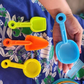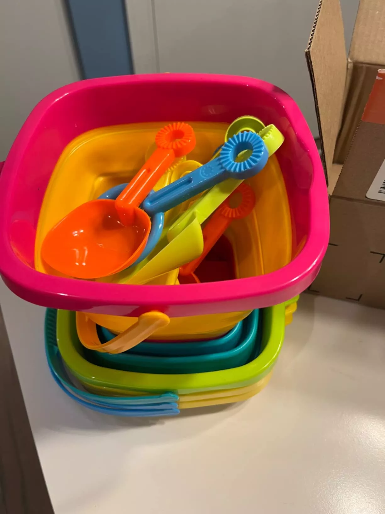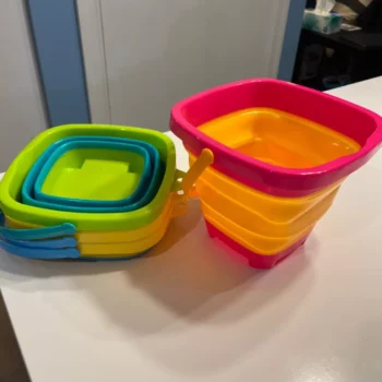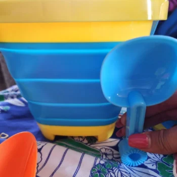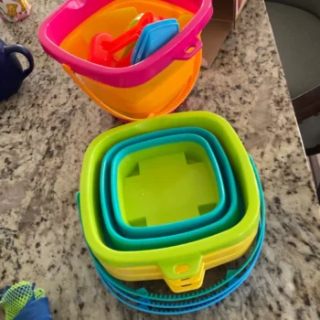 The beauty of this set lies in its smart design and high-quality materials. The collapsible buckets are crafted from soft, flexible rubber that folds down to just under 2 inches thick, making them incredibly easy to pack and store. Each bucket holds up to 2.5 quarts, perfect for sand, water, or treasure collecting. Made from eco-friendly, BPA-free, and durable materials, every toy in this set is safe for children, with smooth edges and vibrant colors that won’t fade in the sun.