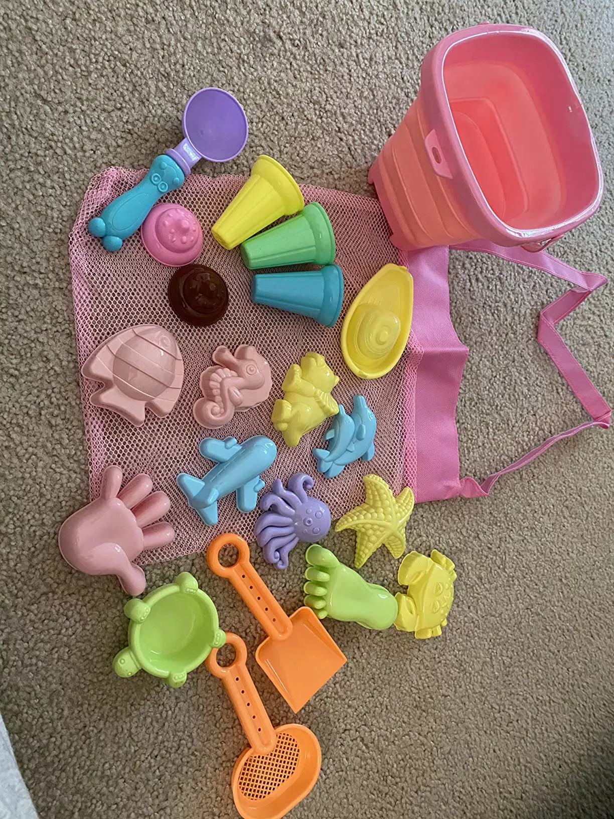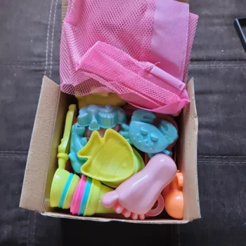 I bought this as a surprise gift for my nieces, encouraging them to spend more time outdoors...and boy did it work wonders! They love building sand castles using the colorful animal and sea creature molds included in the pack. I appreciate that there’s also an easy-to-carry mesh bag which keeps everything clean by draining out water quickly.