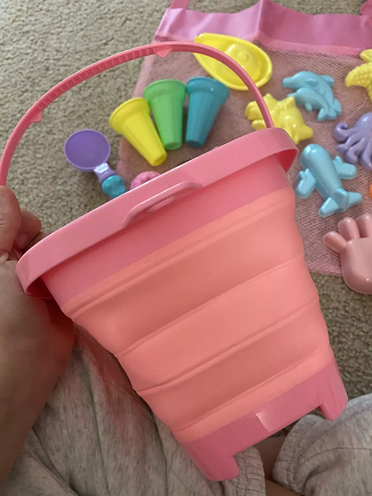 Great beach toy set! The collapsible bucket is a genius idea and the quality of all the toys is excellent. It's perfect for our summer outings.