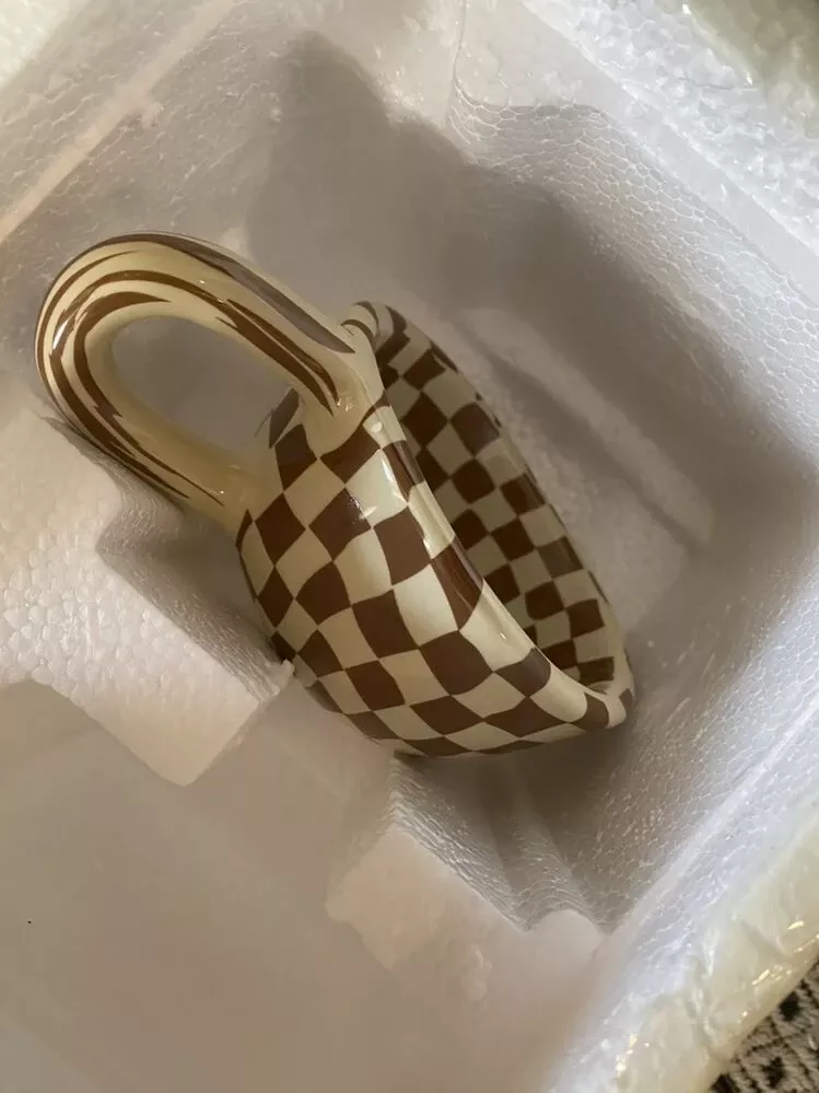 Bring home this one-of-a-kind ceramic mug today and enjoy your beverages in style and comfort!