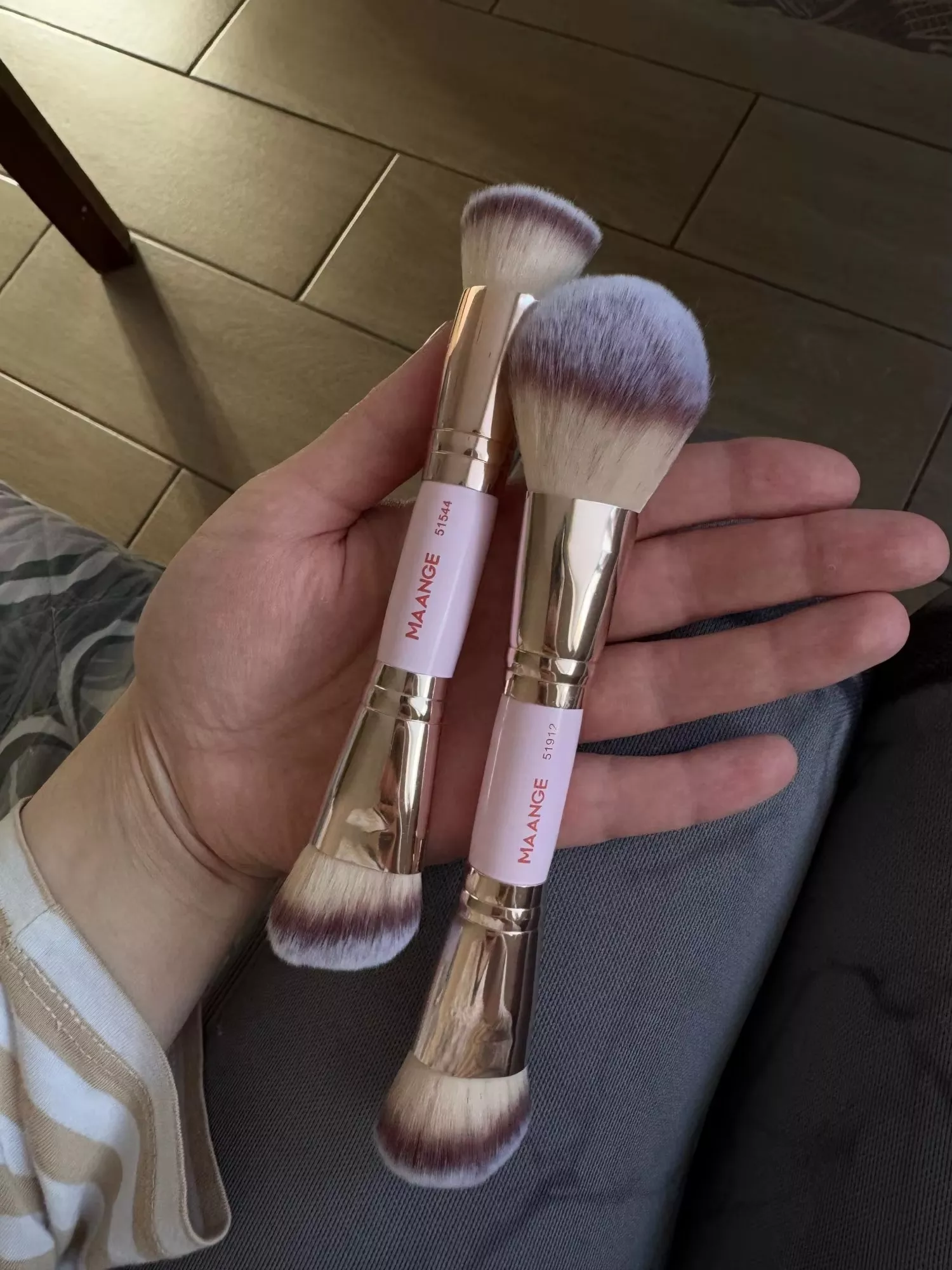 Made with dense synthetic fibers, the ultra-soft bristles feel silky against your skin while delivering flawless coverage. The double-ended design means fewer tools and faster application, giving you more control and a professional finish. With excellent powder-holding capacity and smooth elasticity, these brushes glide effortlessly across your face — no streaks, no shedding, just perfection. Perfect for beginners and pros alike, they work seamlessly with liquid, cream, and powder formulas.
