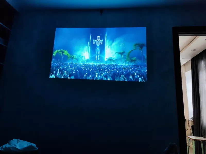 In a dim room, it's just as good as a Full HD TV. I've got a 50-inch 4K but prefer the 120-inch projection. The immersion is unreal—it's like everything's happening right in my room. Honestly, it doesn't feel inferior to my 4K TV, especially since most content I watch isn't in 4K anyway. It's been a game-changer.