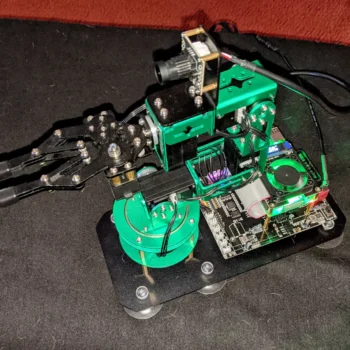 Our robotic arm kit stands out with its high-quality construction and advanced features. It includes six high-quality servos, a high-definition camera, and a multifunctional expansion board, all encased in a durable, green oxidized aluminum alloy. The Jetson NANO 4GB B01 board powers this kit, ensuring smooth operation and high performance. With Ubuntu 18.04LTS and ROS_Melodic as its operating system, this kit offers an immersive experience in AI and robotics.