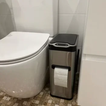 • 3-in-1 Function: This versatile trash can also includes a toilet brush holder and a tissue box holder. It’s a complete bathroom organization solution in one!
