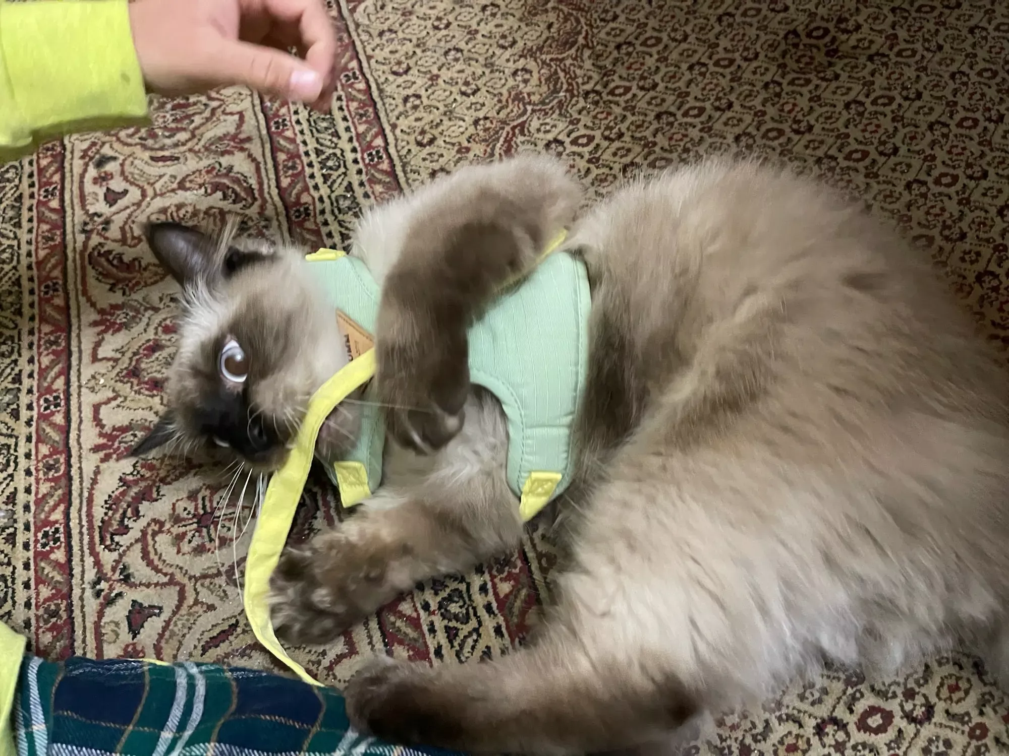 i'm really happy with this purchase... easy to adjust and doesn't irritate my kitty's skin. the leash is long enough for her to explore but not too long that i lose control.