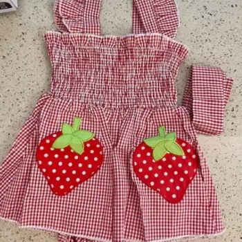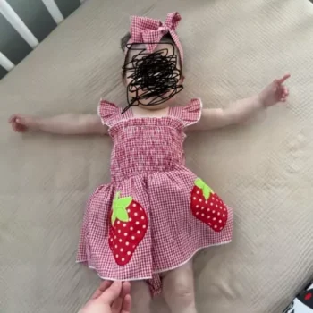 Make your baby girl’s summer even sweeter with this charming plaid romper dress set. This delightful 2-piece outfit features a soft, lightweight plaid romper with adorable strawberry embroidery and playful fly sleeves. Perfect for sunny days, family outings, photoshoots, or birthday parties, this romper brings a burst of color and joy wherever your little one goes. Paired with a matching headband, this look is simply irresistible and picture-perfect.