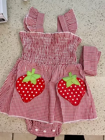 • Adorable Strawberry Embroidery — Cute smocked design that makes your little girl stand out.
