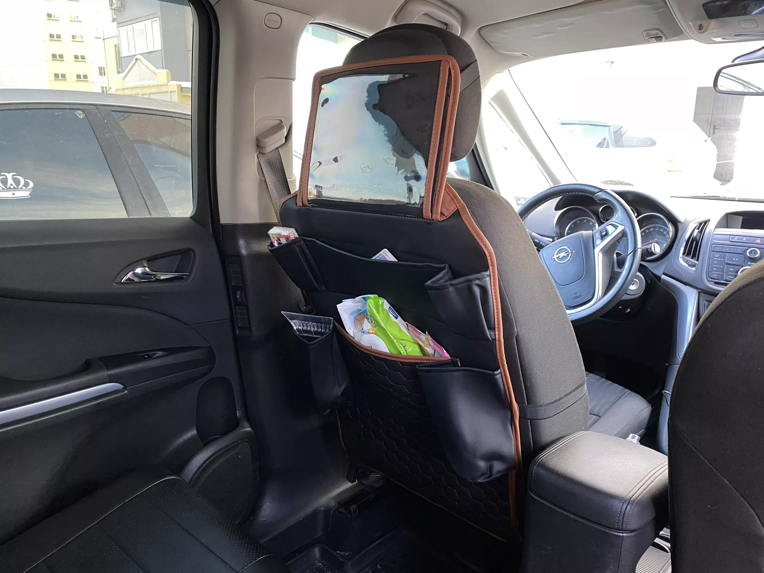Sturdy metal hooks, strong nylon straps and an anti-slip back layer securely hold the organizer on the seat back and prevent it from sliding while on the road. Plus, installation is easy and takes a minute!