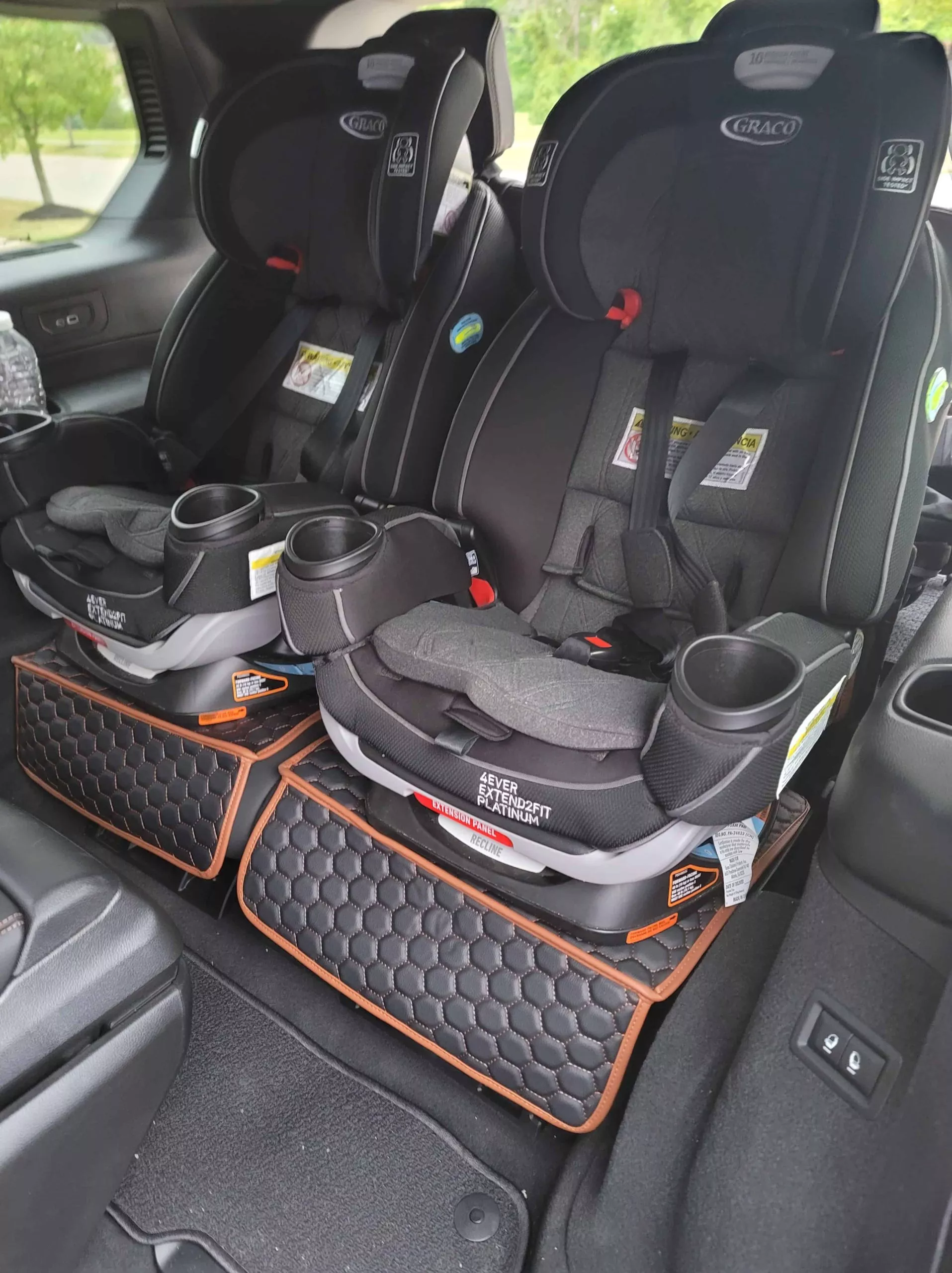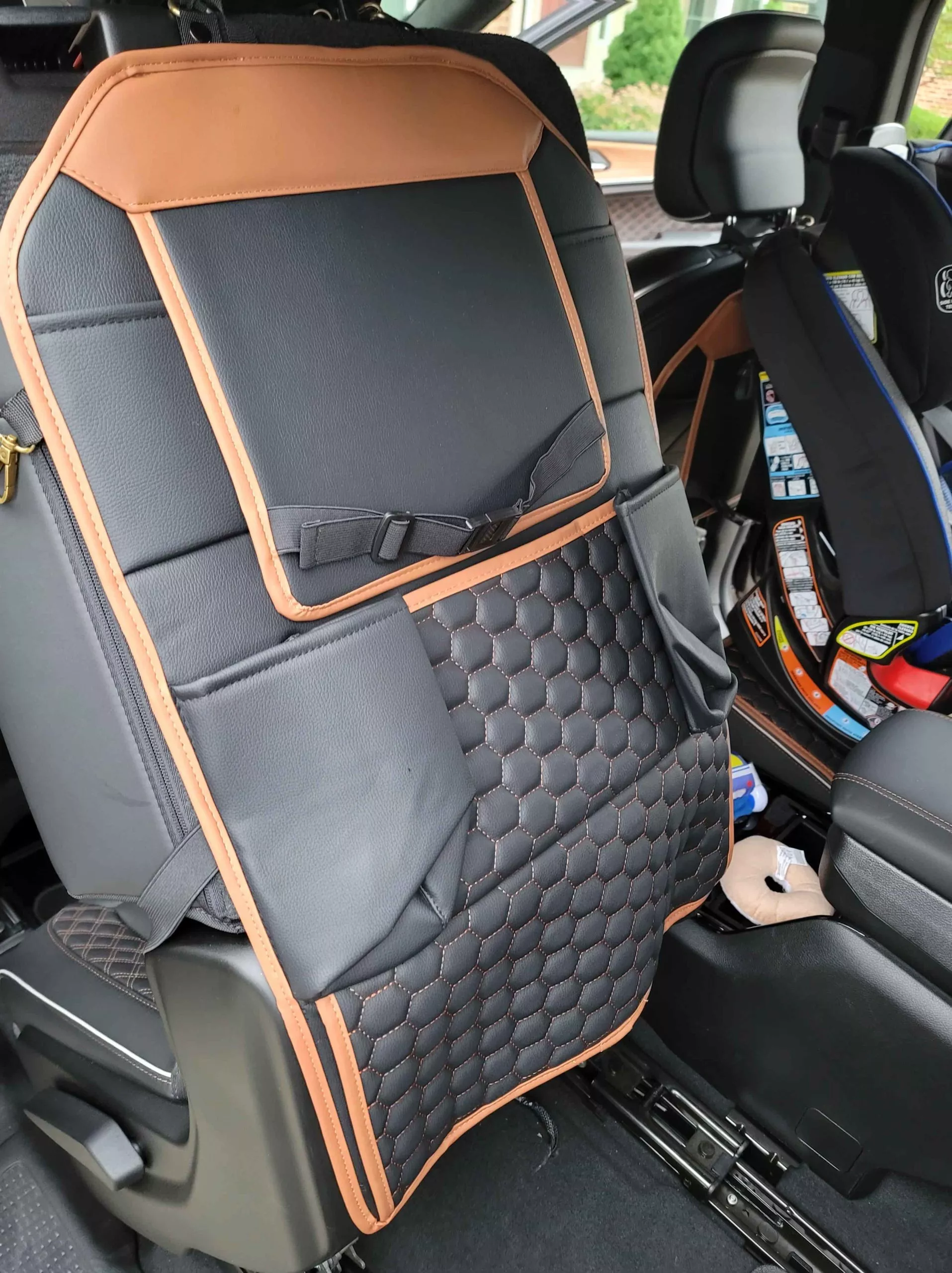 Crafted from smooth eco-leather, this seat organizer is waterproof and easy to clean with a damp cloth. The clear TPU pocket is also waterproof and safe for babies. All the materials used are vegan and non-toxic.