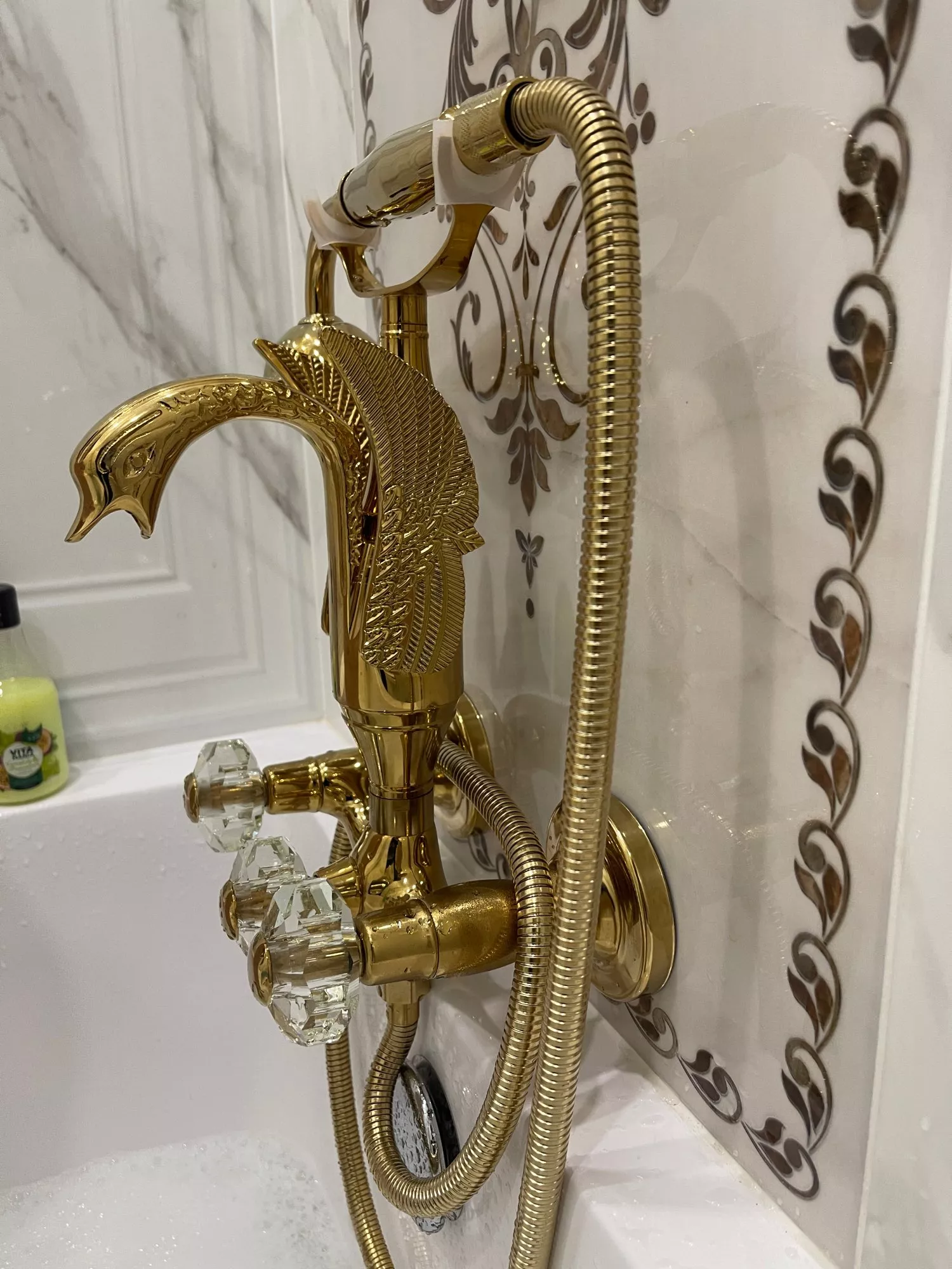 This shower set is not just a functional addition to your bathroom; it’s a statement piece that speaks volumes about your taste. The gold swan design is not only visually appealing but also symbolizes grace and elegance. The dual control feature allows for easy adjustment of water temperature and pressure, ensuring a comfortable and relaxing shower every time. Ideal for use in both new installations and bathroom renovations, this shower set is a versatile choice that suits various styles and preferences.