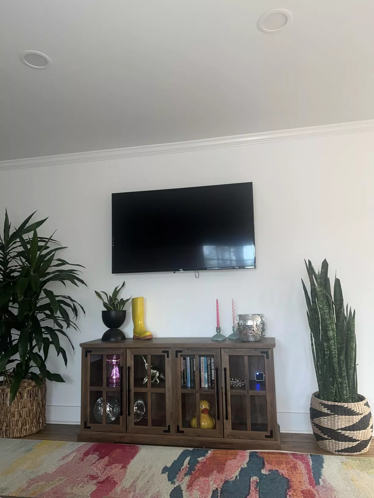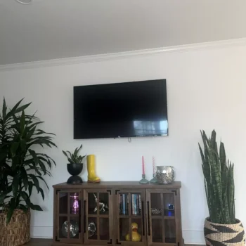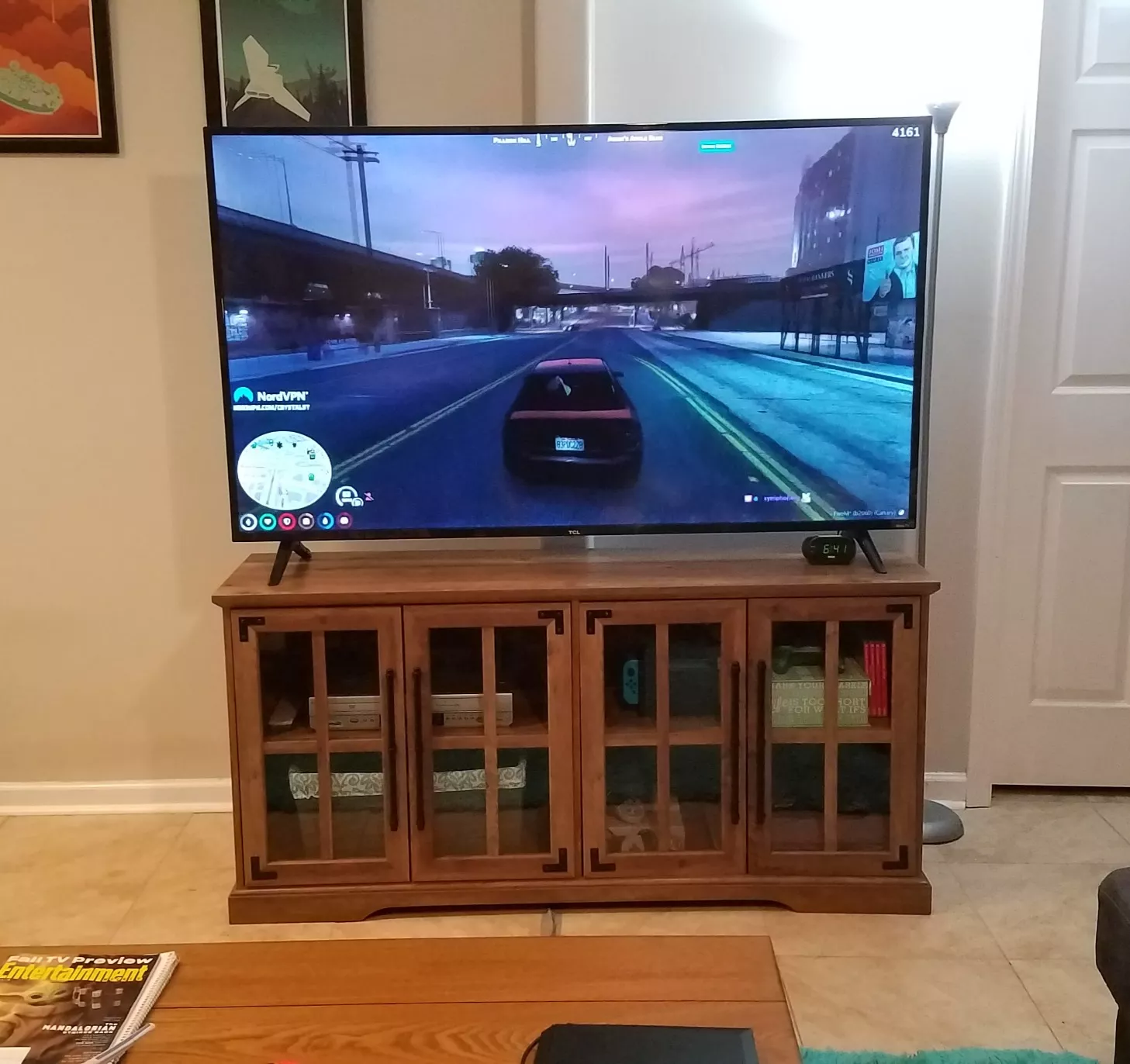 • Adjustable shelves accommodate various items, from bulky appliances to decorative pieces