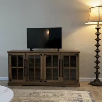 Elevate your home decor with our exquisite 63″ Buffet Sideboard Cabinet, a perfect blend of modern functionality and farmhouse charm. Crafted to perfection, this cabinet is designed to enhance any household style with its sleek silhouette and vintage-inspired details.