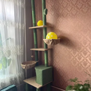 Don’t wait to give your cats the joy they deserve. This floor-to-ceiling cactus cat tower brings comfort, play, and relaxation all in one. Click “Add to Cart” today and let your pets explore their new favorite spot from the ground up!