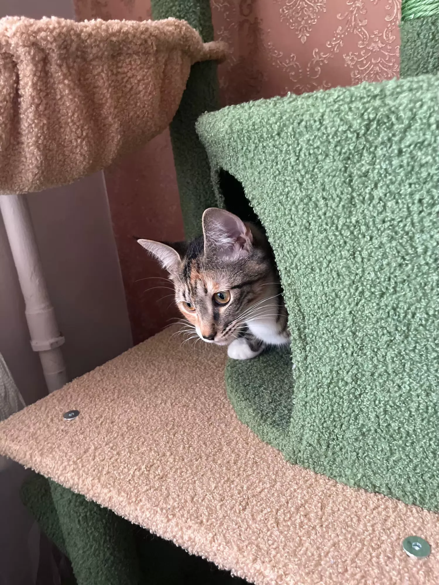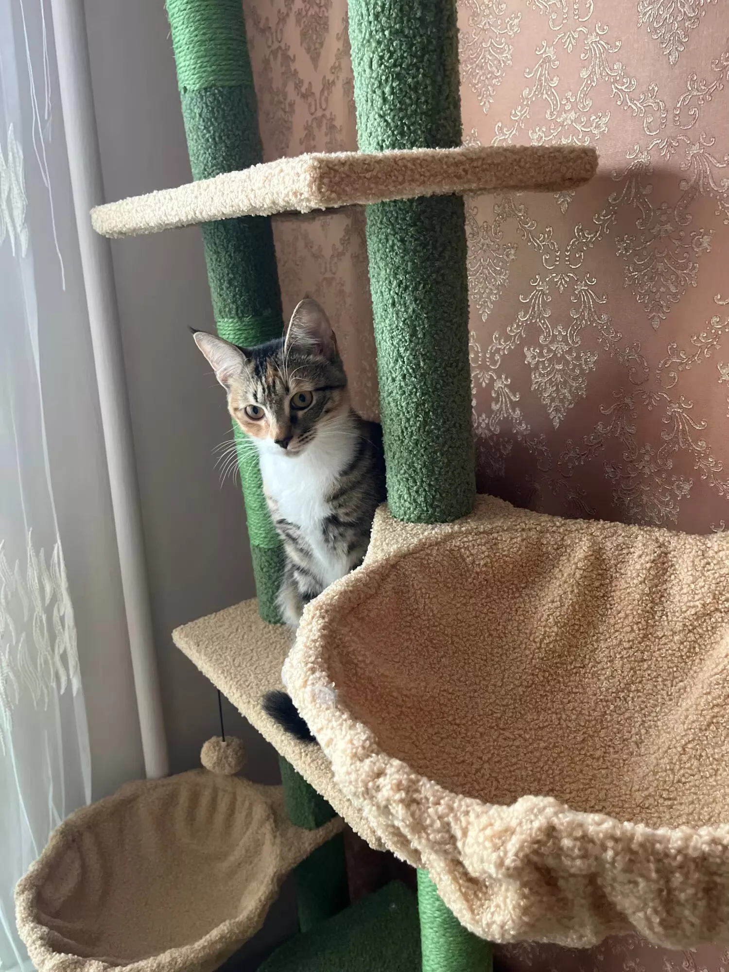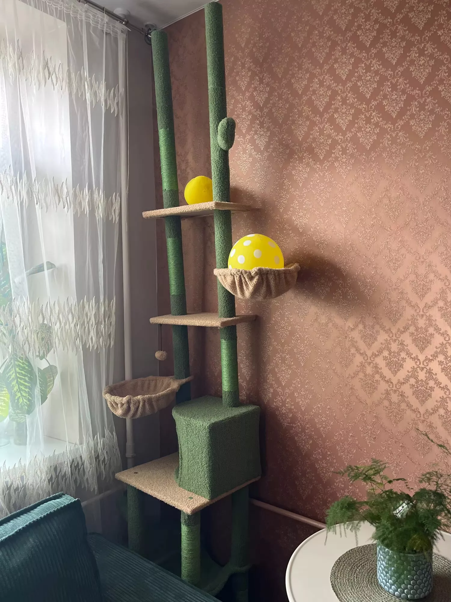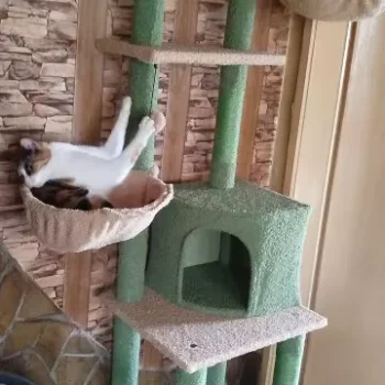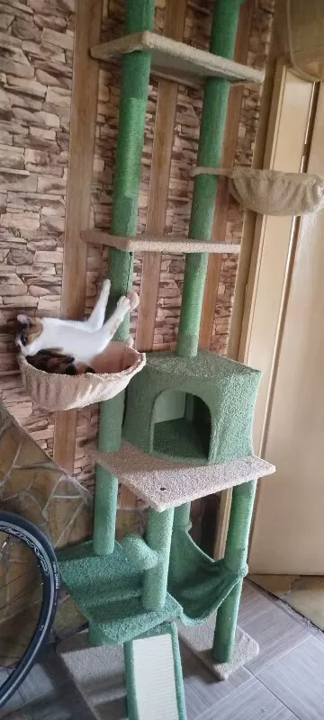 Whether it’s lazy afternoons spent lounging in the cozy hammocks or adventurous leaps between platforms, this cactus-inspired cat tree will be your pet’s new favorite hangout spot. Adjustable from 85 to 112 inches in height, it fits securely between the floor and ceiling without the need for drilling—ideal for apartments or rented homes.