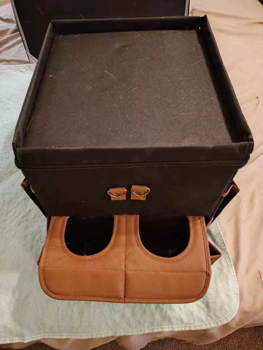 Large compartment with a removable divider, eight side pockets and two front pockets can hold everything you need on the road – from drinks to gadgets. It is suitable for all car models, and you can use it in your front seat, back seat, or even in the trunk. Plus, the lid works as a backseat table!