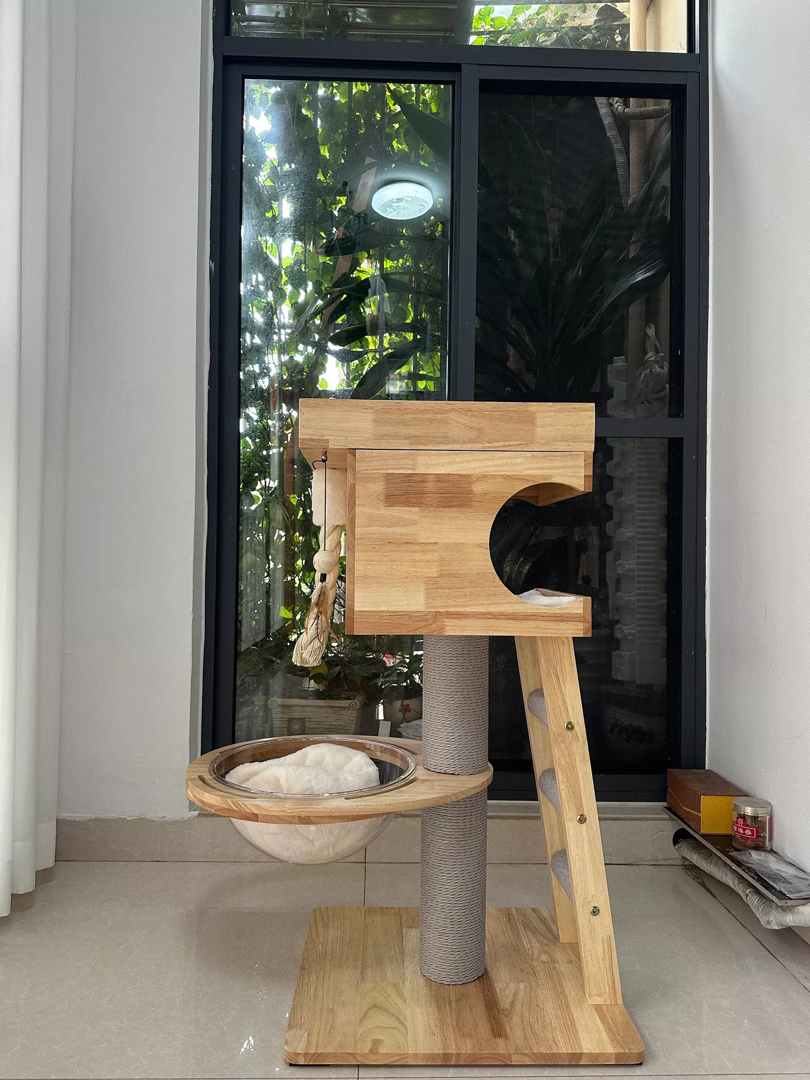 The wooden construction is incredibly sturdy, handling my big cats with ease.