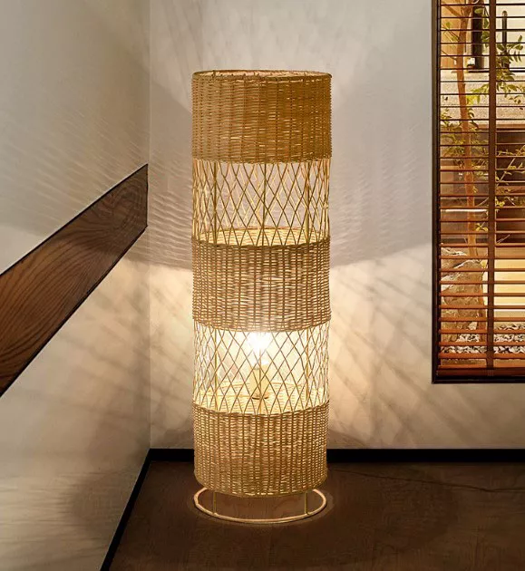 Contemporary Japanese Rattan LED Floor Lamp – Zen Style Lighting for Home