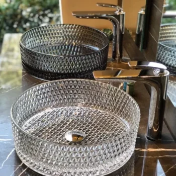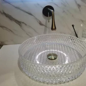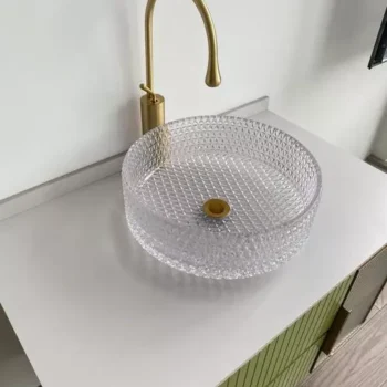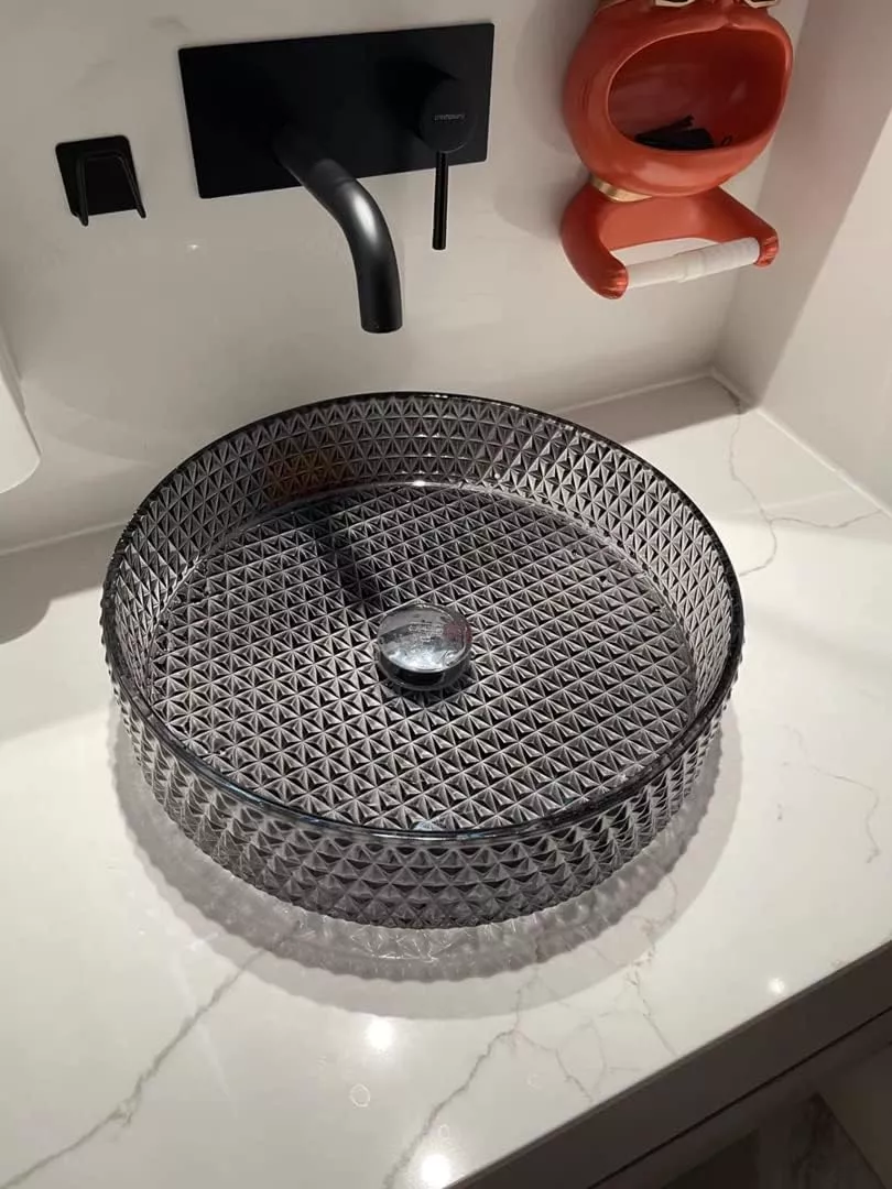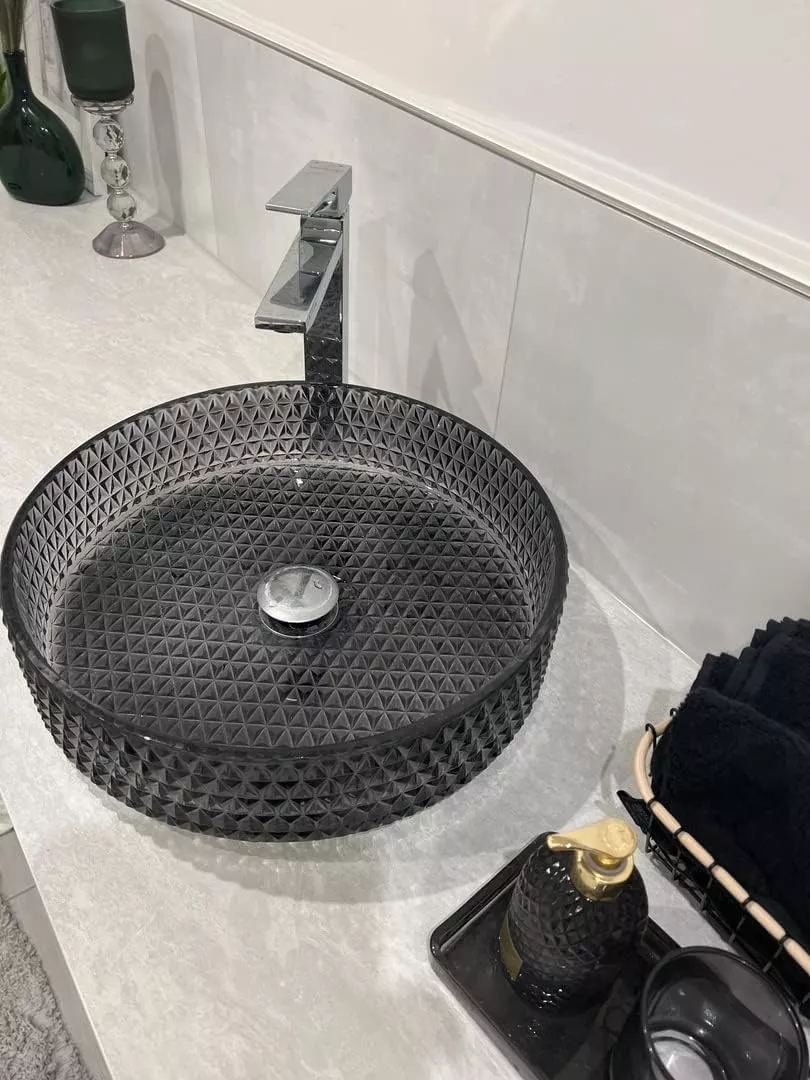 Introducing our exquisite Crystal Glass Vessel Sink and Faucet Combo, a statement piece that combines function with opulent design to transform any bathroom into a modern sanctuary. Crafted with precision, this round, tempered glass sink boasts smooth edges and a hand-painted finish that exudes sophistication. Its glittering surface is not only a feast for the eyes but also scratch-resistant, ensuring your sink remains a centerpiece for years to come.