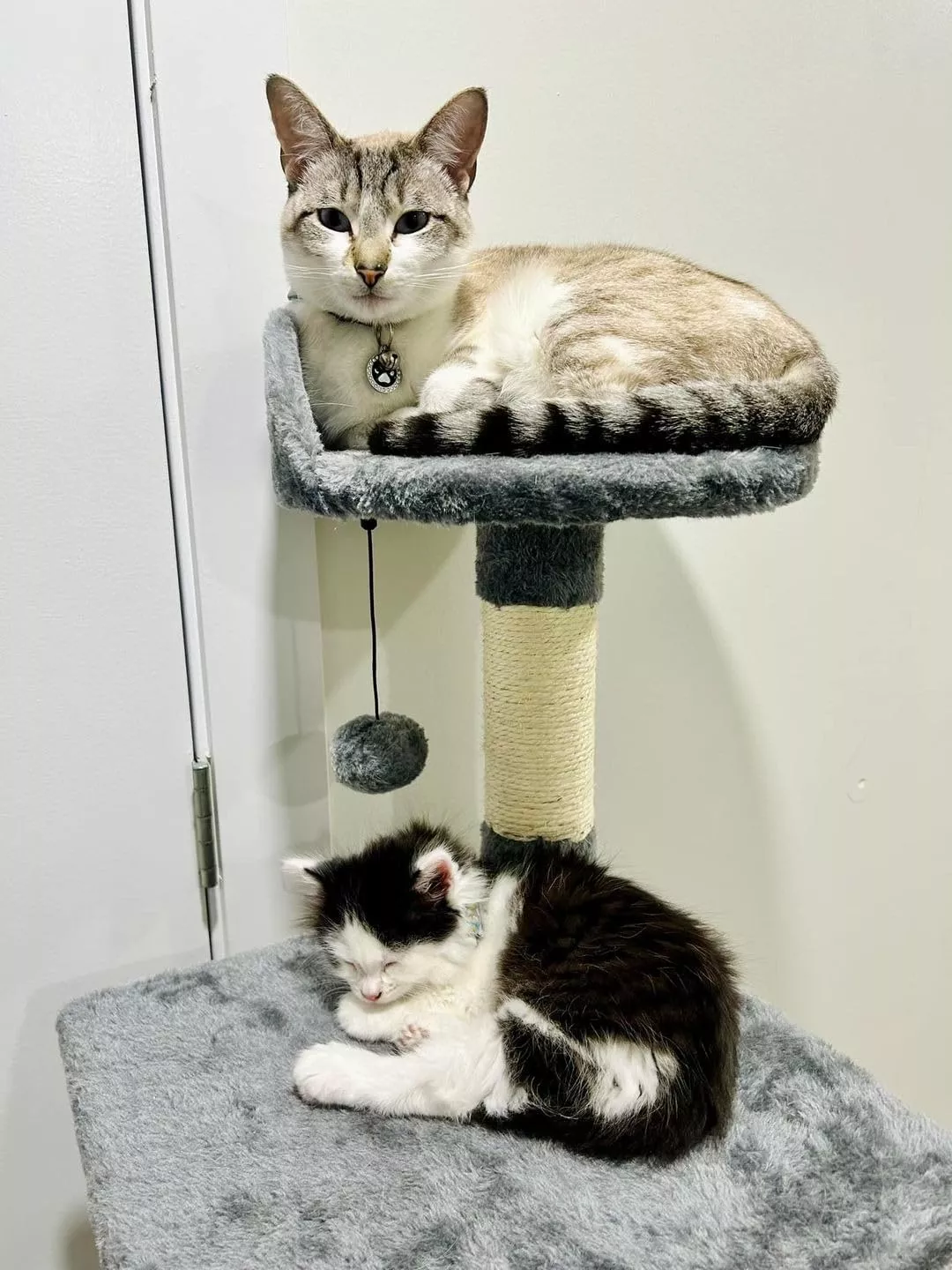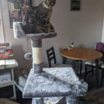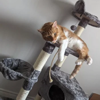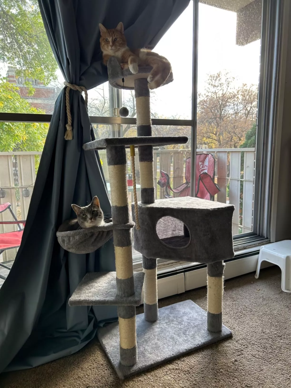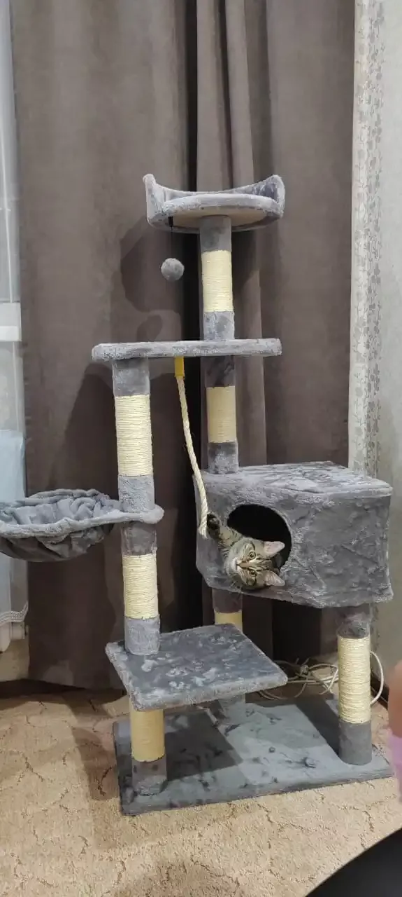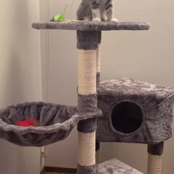 • Scratching Posts: Wrapped in sisal rope, these posts satisfy your cat’s scratching needs, protecting your furniture from damage.