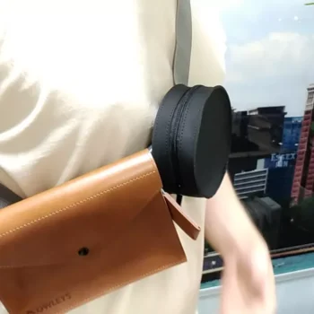 The black round pocket is ideal for storing your pet’s favorite treats, while the rectangular brown one is perfect for storing poop bags.