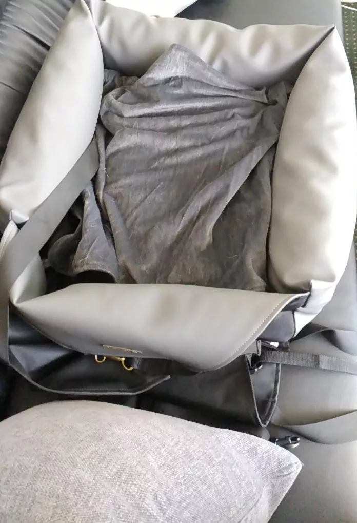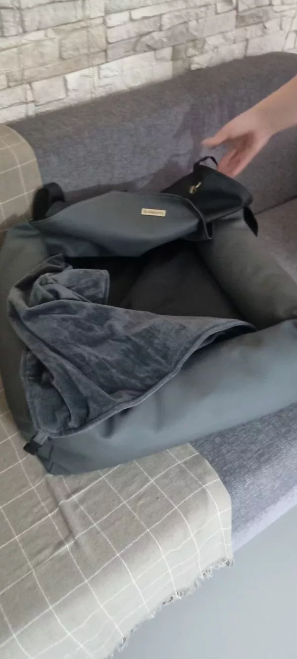 Create a cozy and safe place for your pet in the car with our soft booster seat. And of course, don’t forget to secure a dog safety belt to the loop in the fold!