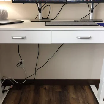• Dual Wooden Drawers: Keep your workspace tidy with two built-in drawers, perfect for storing supplies and reducing clutter.