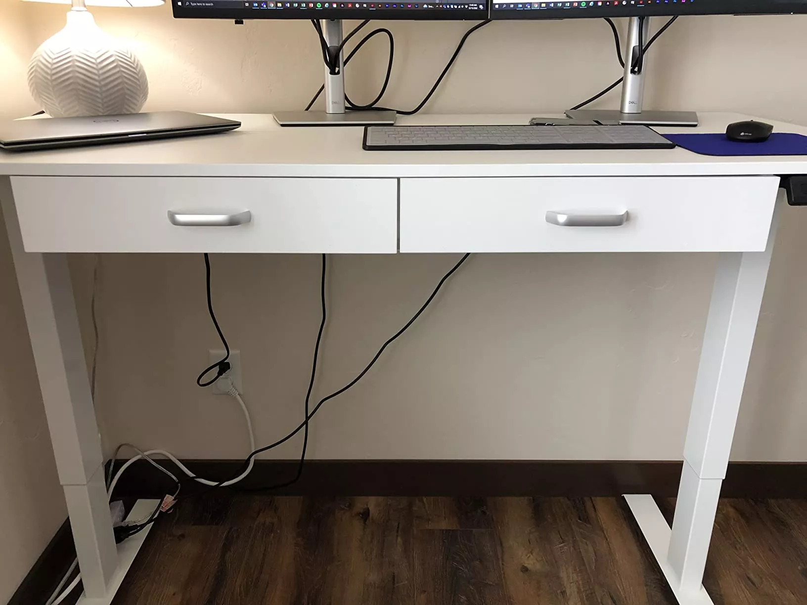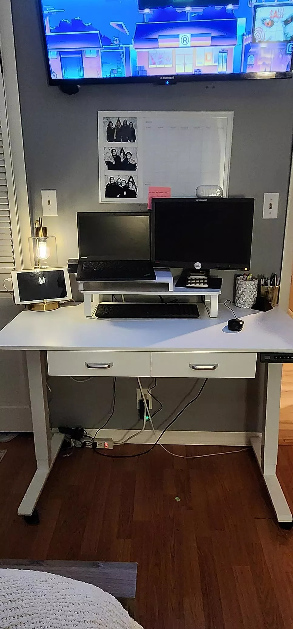 Electric Adjustable Height Standing Desk with Dual Drawers and Mobile Casters