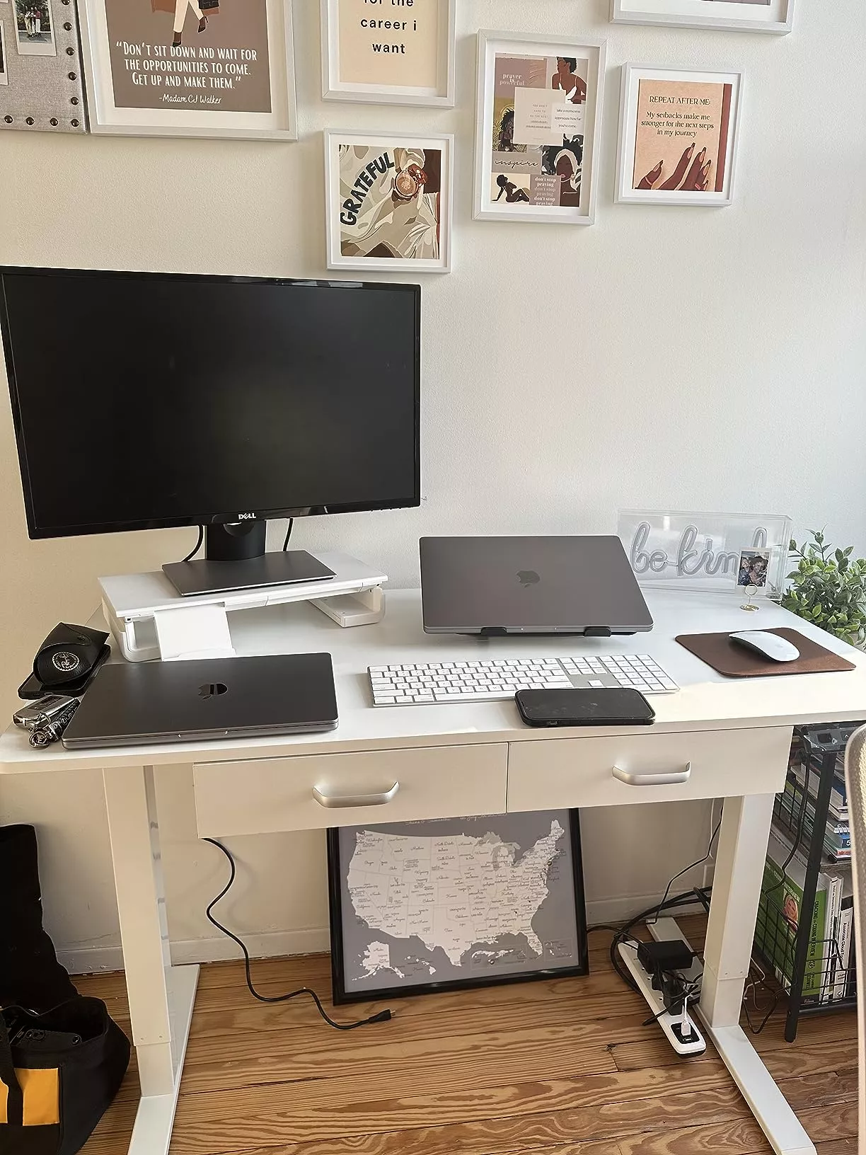 • Electric Height Adjustment: Easily adjust the desk height from 27.16 inches to 46.06 inches with the touch of a button, thanks to three preset height settings.