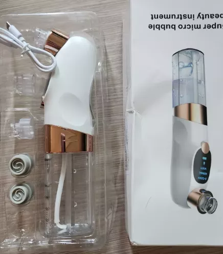 What makes it truly special? The unique bubble water circulation technology doesn’t just extract impurities — it infuses skin with hydration. Add your favorite toner, essence, or softener into the water tank for an elevated skincare experience. Plus, its ergonomic design, soft rubber heads, and rechargeable battery make it both practical and luxurious.
