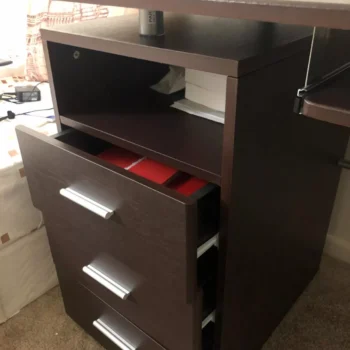 Where do I even begin? This desk has been an absolute game-changer for my workspace. The elegant chocolate shade adds a touch of sophistication that is hard to ignore, while the sturdy and durable design ensures it's going to be part of my office for years to come. But what truly sets this piece apart is its ample storage - I can easily fit all my work essentials without cluttering up the space. Every time I sit down at this desk I feel motivated and ready to tackle whatever comes my way. It’s more than just a furniture purchase; it’s an investment in productivity and style! Highly recommended!