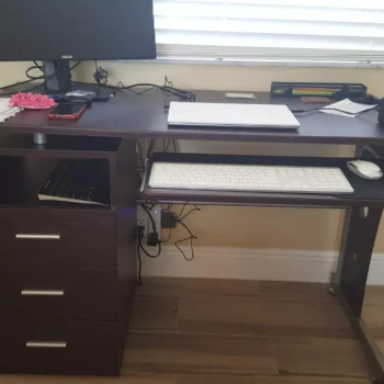 What sets this desk apart is its blend of style, durability, and functionality. The sleek chocolate color and modern design make it a stylish addition to any room. The robust construction ensures it’s a long-lasting investment. Plus, the thoughtful design of storage and workspace allows you to keep everything you need within arm’s reach, helping you maintain a clean and productive environment.