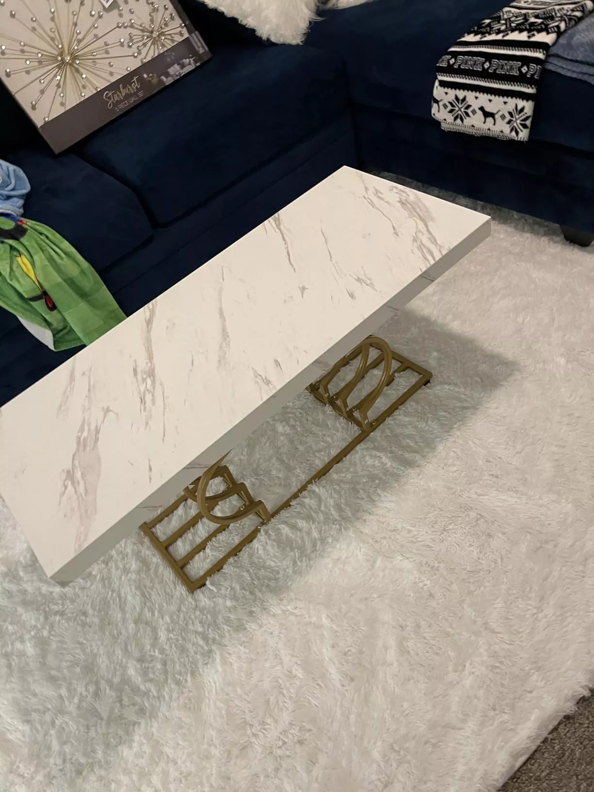 • Material: Faux Marble Laminate, MDF, Metal Frame