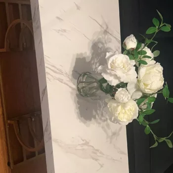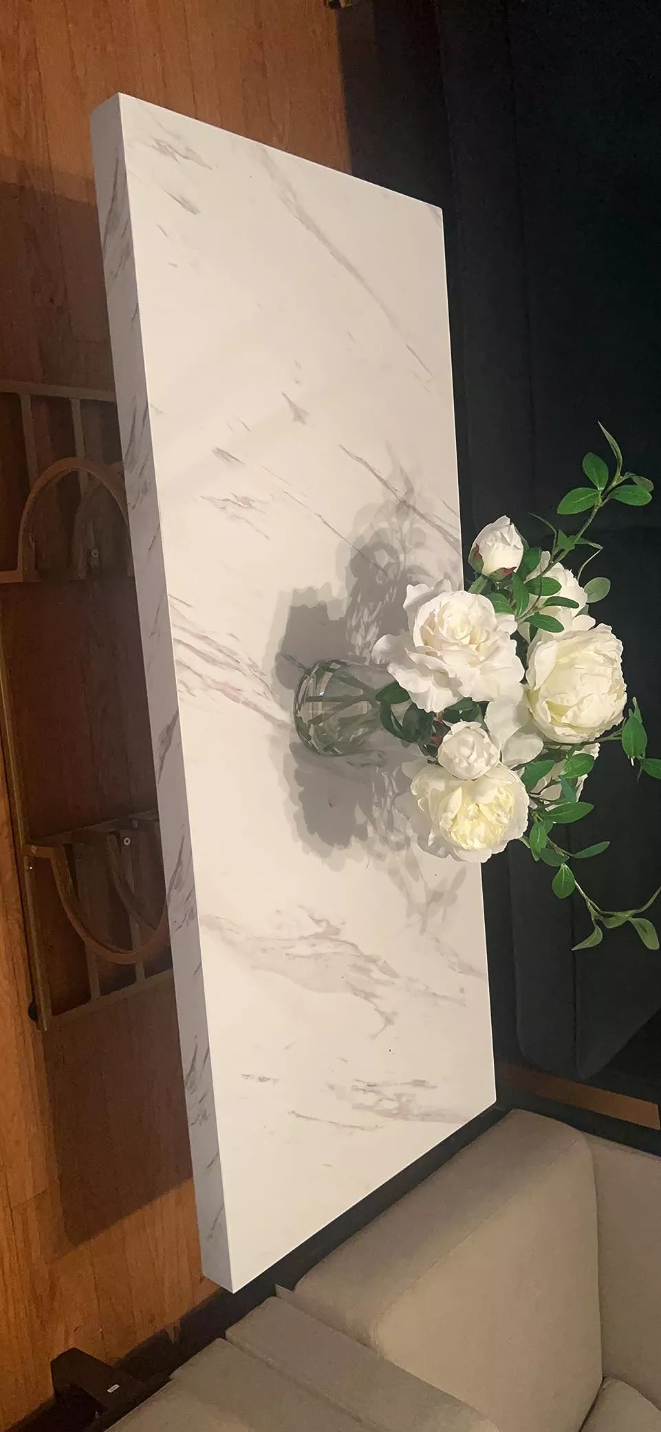 • Spacious faux marble tabletop for daily use and display.