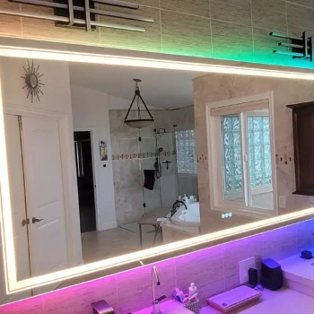 Elevate your bathroom’s ambiance with our LED Vanity Mirror, a perfect blend of elegance and functionality. This mirror is not just a reflection of you but a showcase of your taste for the finer things in life. Its modern design, complemented by RGB backlighting and dimmable features, brings a touch of luxury to your daily routine. Whether you’re getting ready for the day or unwinding in the evening, this mirror provides the perfect lighting to suit your mood and needs.