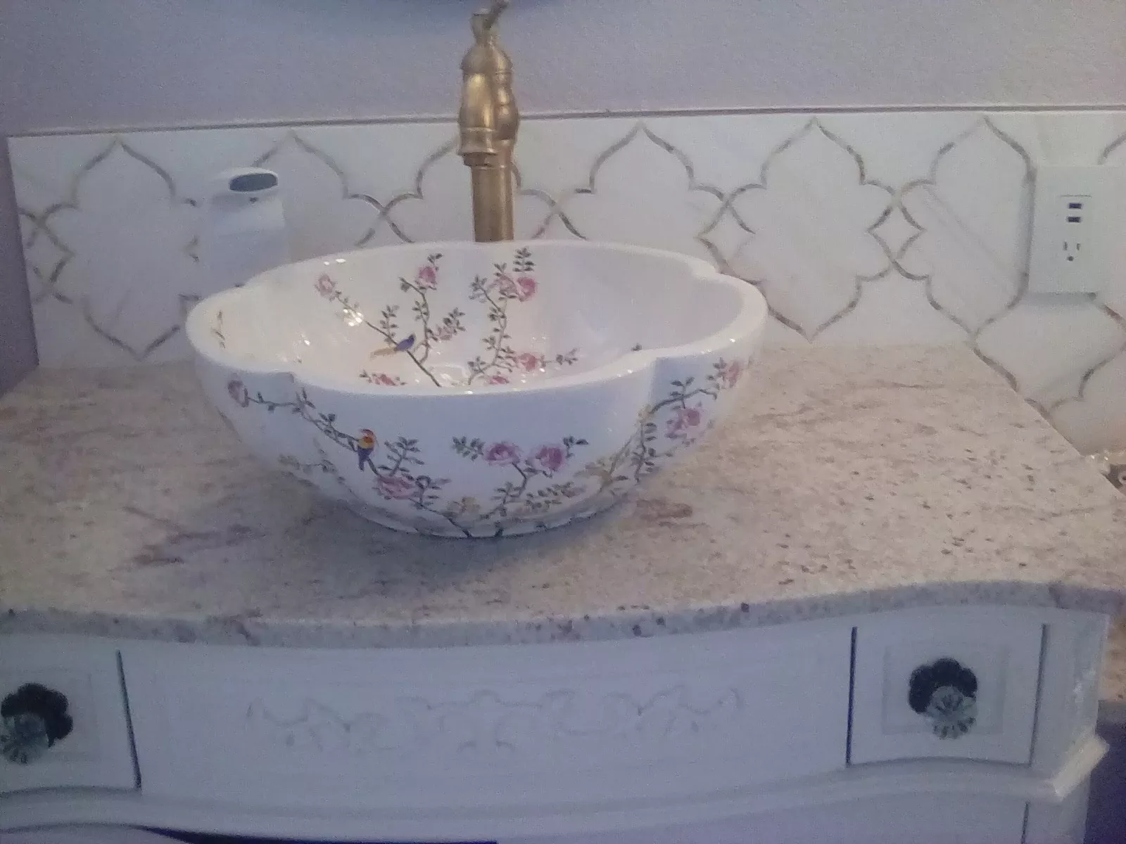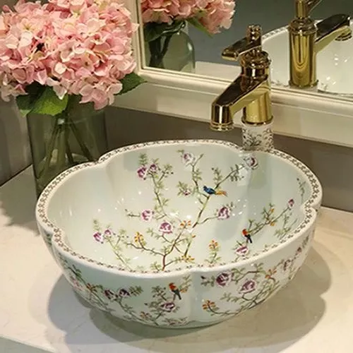 • Hand-Painted Flower & Bird Pattern: Each sink is uniquely crafted to bring a piece of art into your bathroom.