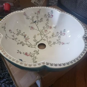 What truly sets our Elegant Petal Shaped Ceramic Vessel Sink apart is its blend of functionality and art. The hand-painted flower and bird pattern brings nature’s beauty indoors, creating a serene and elegant bathroom atmosphere. The solid brass antique faucet complements the sink perfectly, offering a smooth and reliable water flow. The above-counter installation not only adds a modern touch but also ensures ease of use and maintenance. Upgrade your bathroom today with our Elegant Petal Shaped Ceramic Vessel Sink with Antique Brass Faucet. Experience the perfect combination of style, durability, and convenience. Click the “Add to Cart” button now to transform your bathroom into a sanctuary of elegance and sophistication.