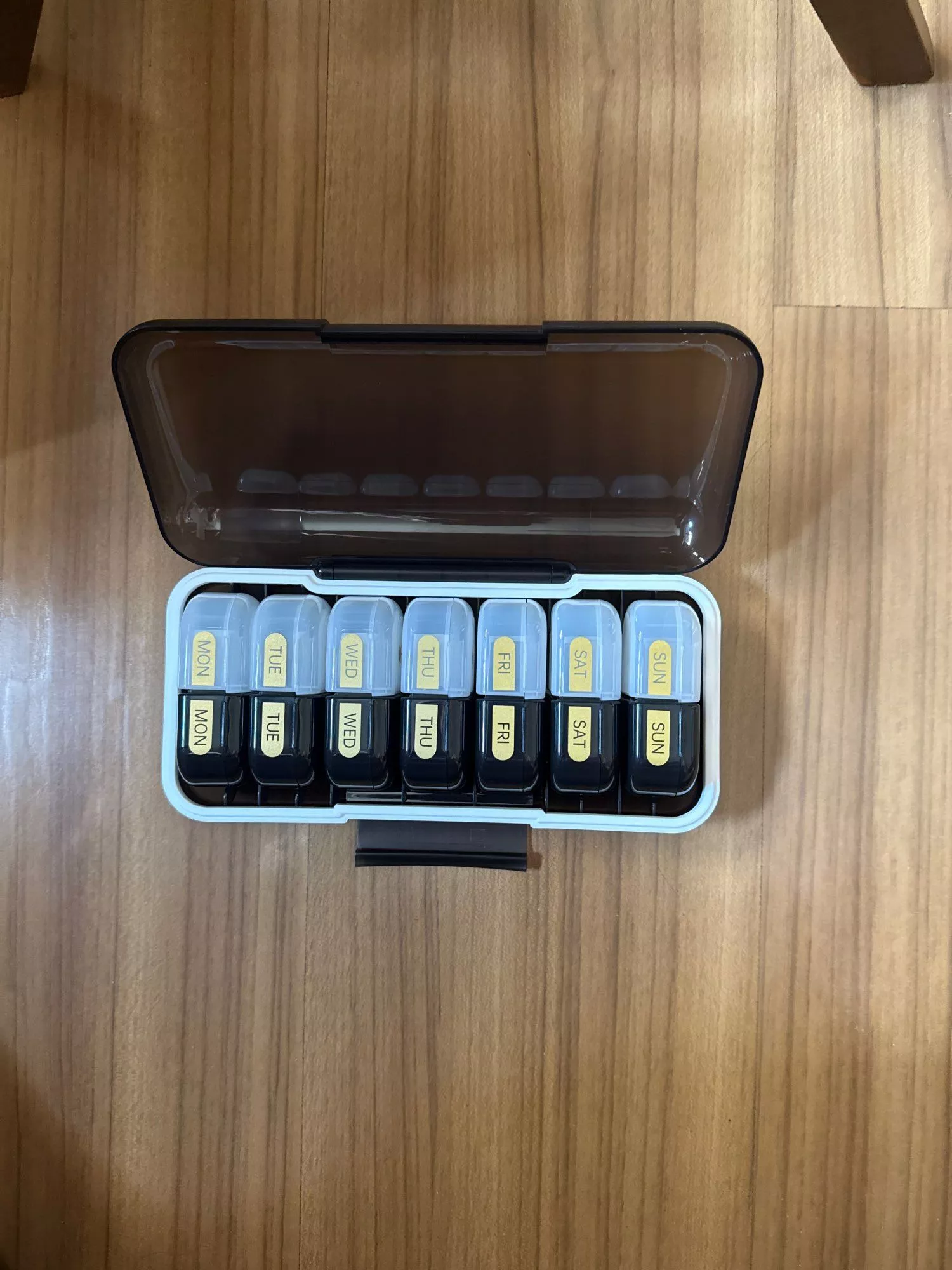 Managing your daily medication or supplement routine just got easier with our Extra Large Weekly Pill Organizer. Designed with convenience, capacity, and clarity in mind, this pill box makes it simple to stay on track with your health goals. Whether you take multiple pills a day or just need a reliable system to manage your vitamins and supplements, this pill organizer is the perfect solution. With two compartments per day – AM and PM – and a total of 14 spacious sections, this sleek and functional design keeps your weekly dosage sorted and easy to access.