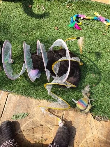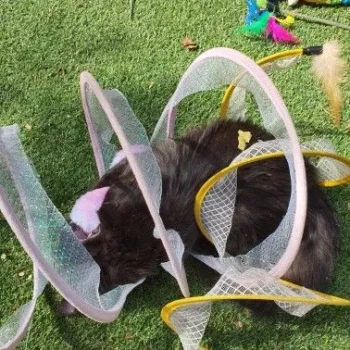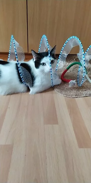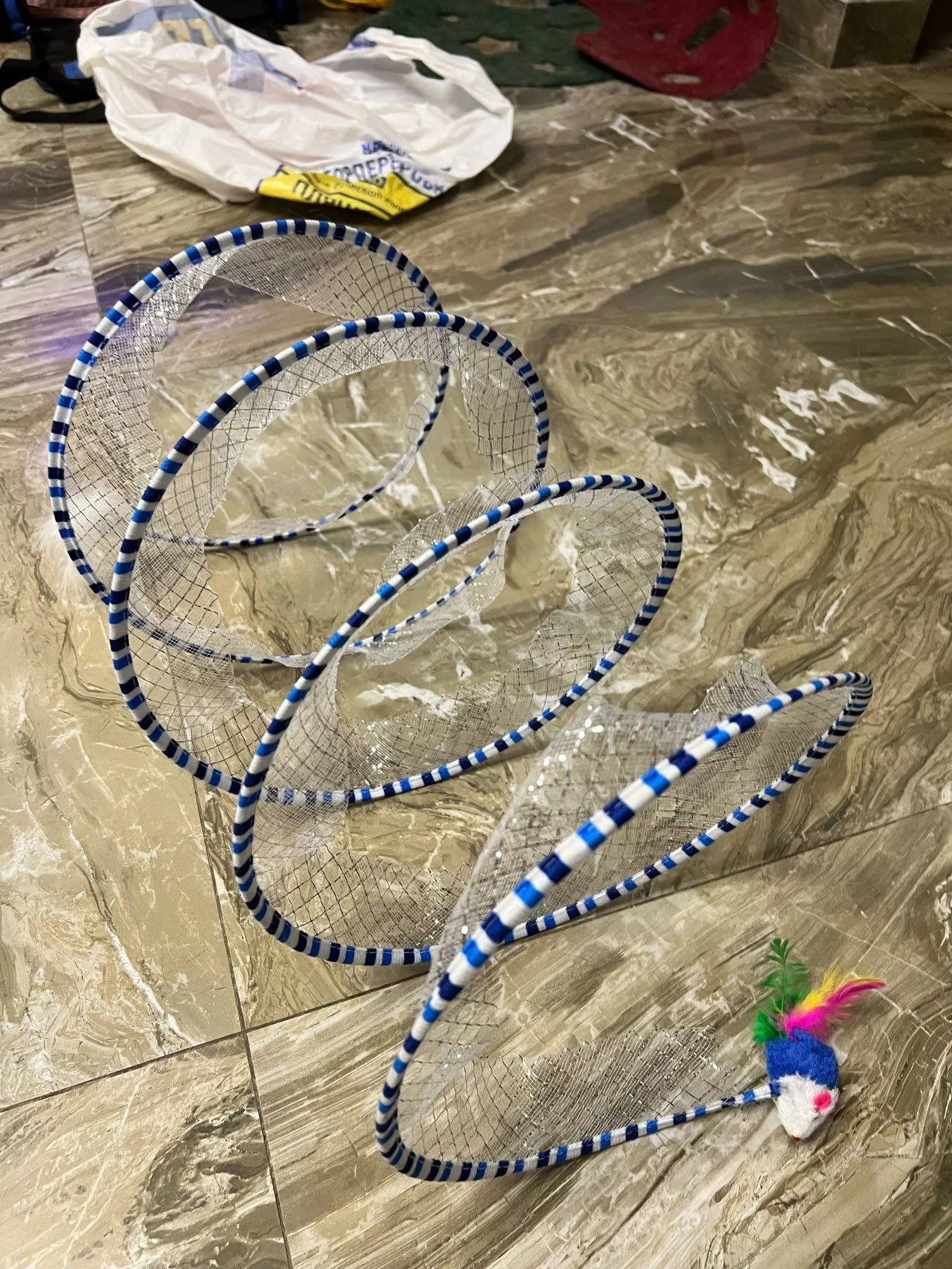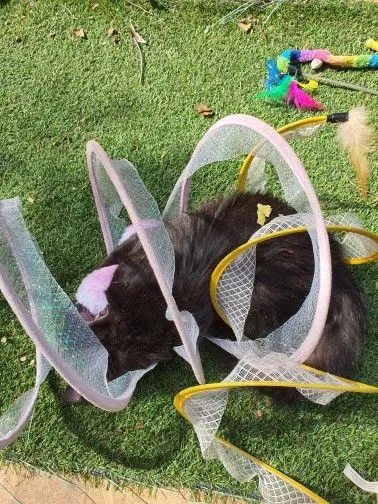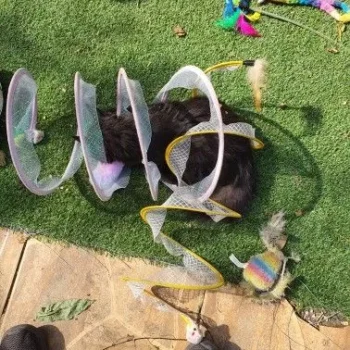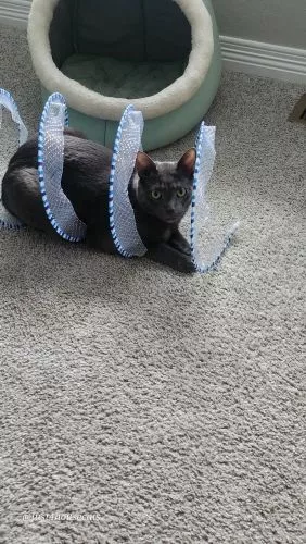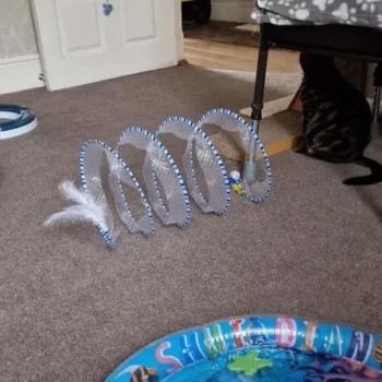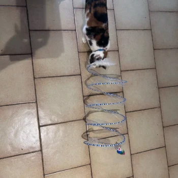 Very cool spring-tunnel!!!…. My cat is happy to play with her!!!…. Climbing through all the cracks)))…. He's happy and me too!