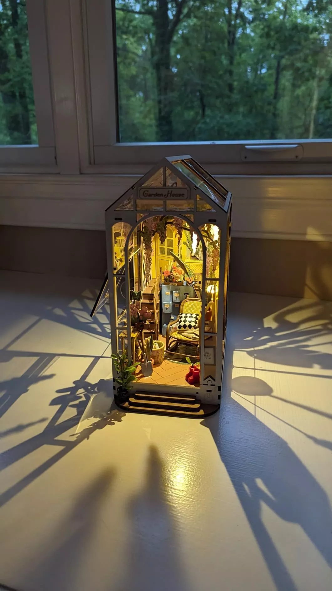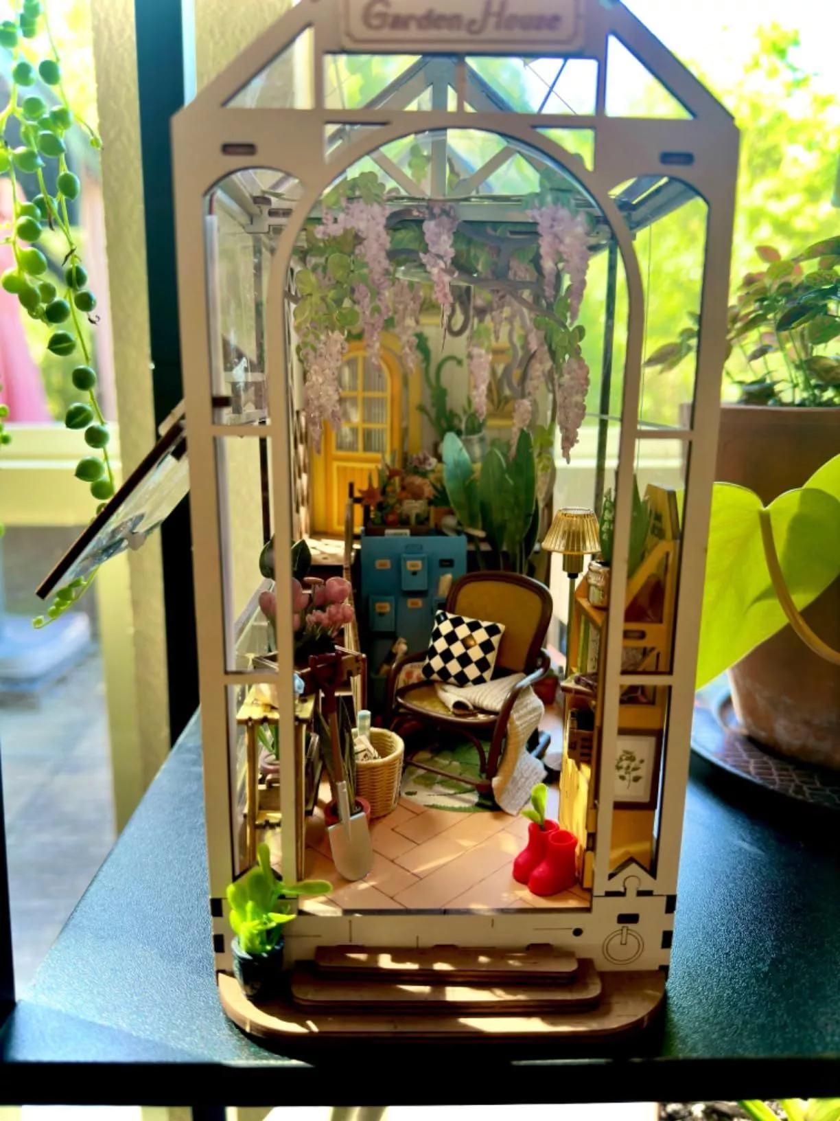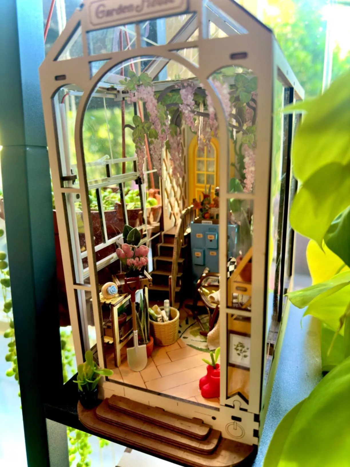 A rewarding sense of accomplishment after finishing assembly can't be overstated. Not only did I have fun putting together this beautiful miniature garden house but now every time I look at it on my bookshelf, I feel proud that I created something so lovely myself!