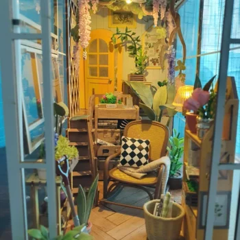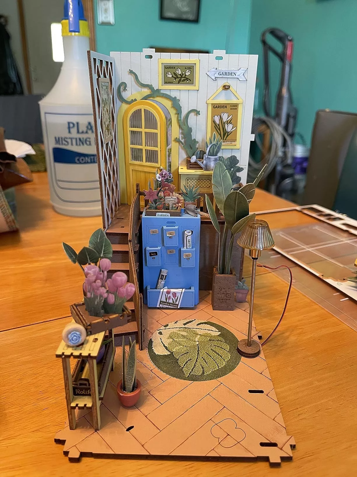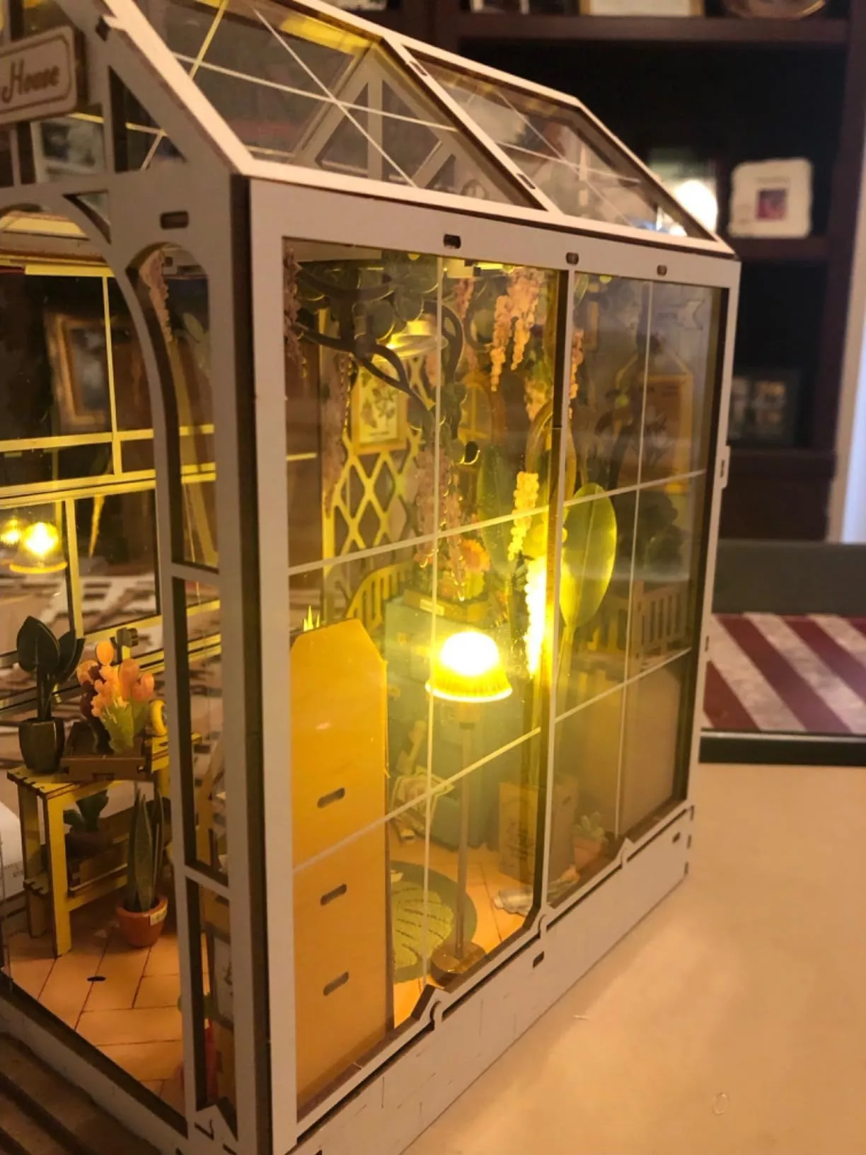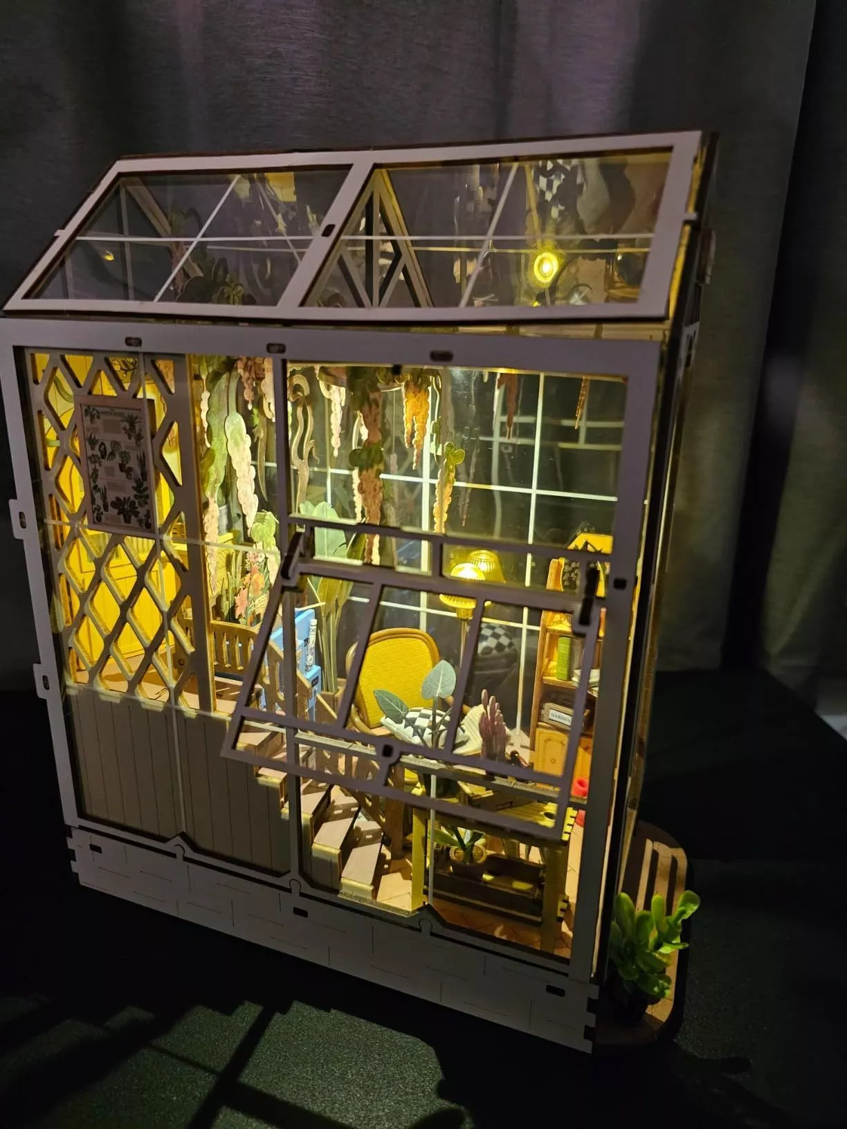 A rewarding sense of accomplishment after finishing assembly can't be overstated. Not only did I have fun putting together this beautiful miniature garden house but now every time I look at it on my bookshelf, I feel proud that I created something so lovely myself!