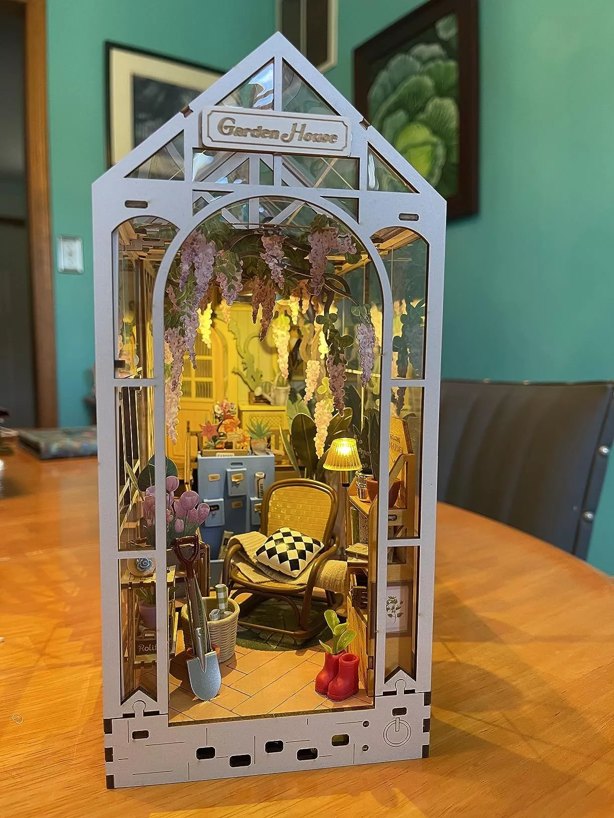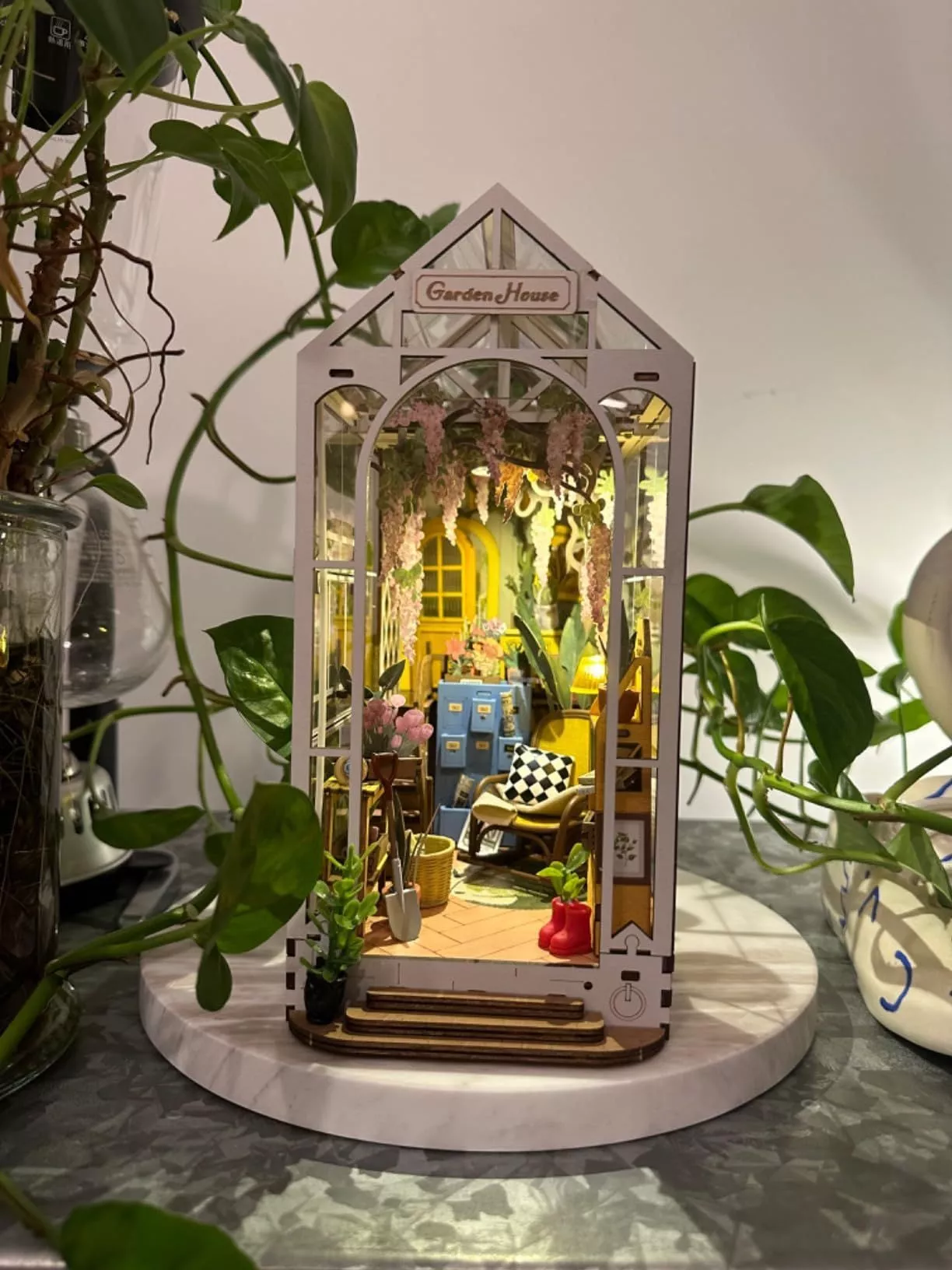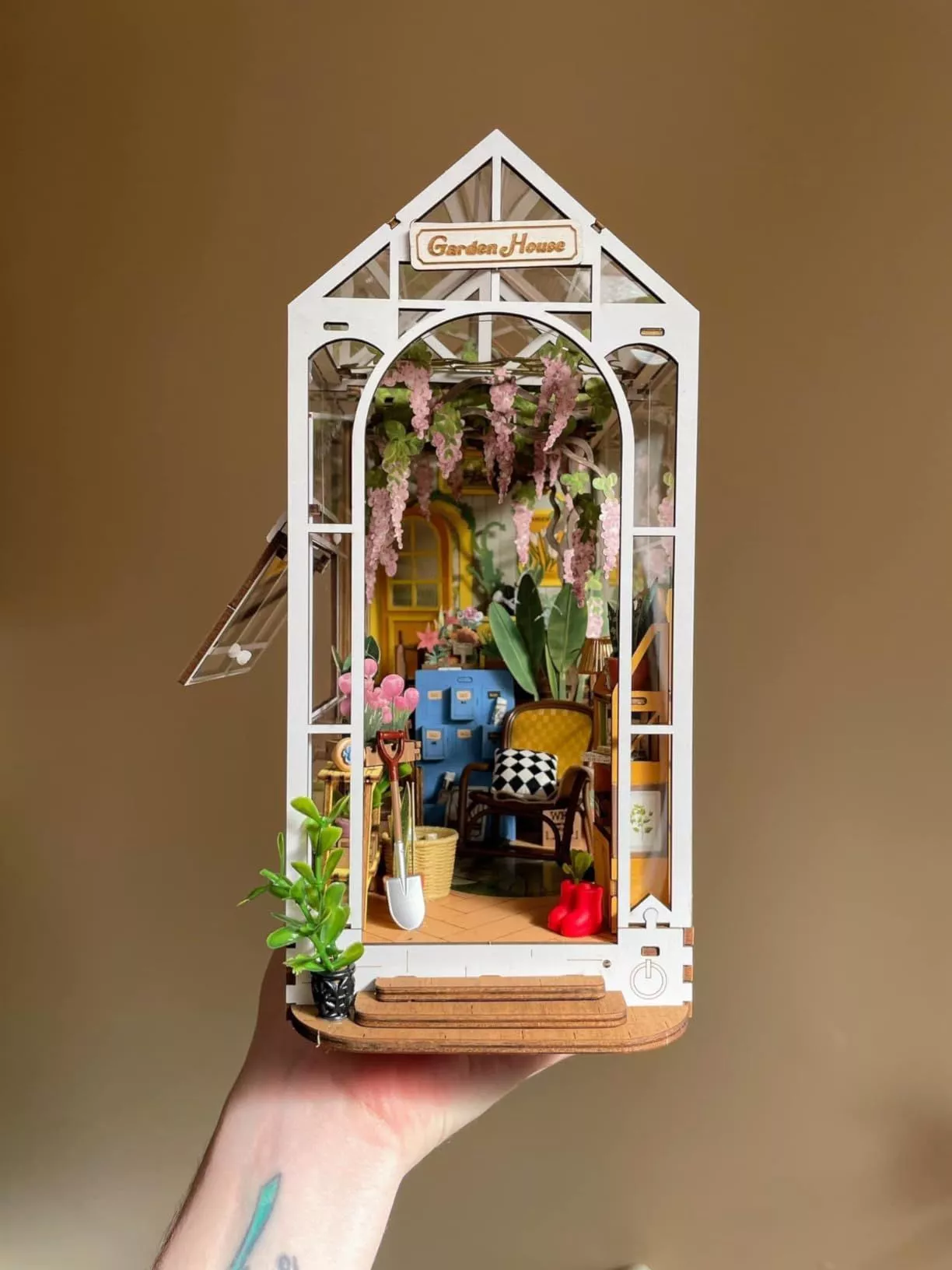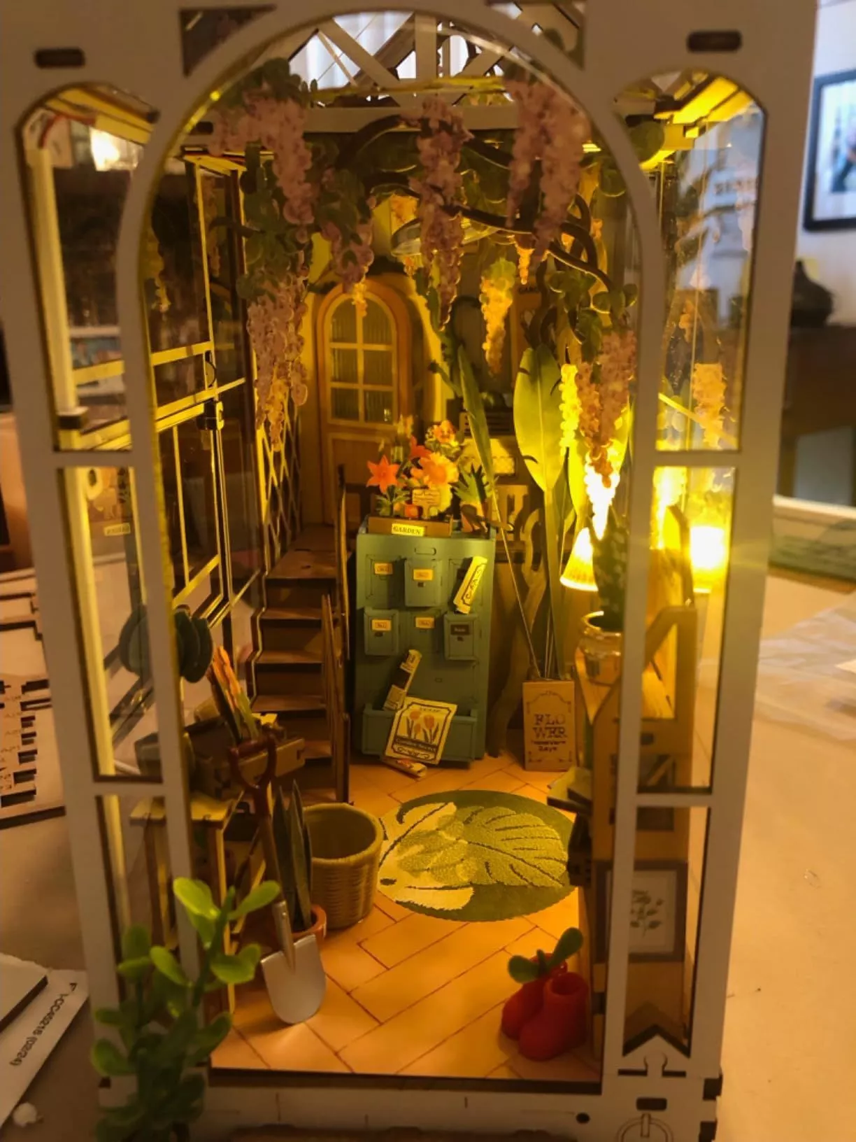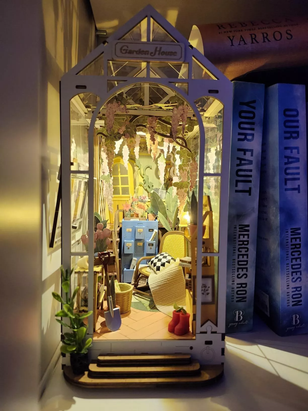 I must say, this garden house book nook kit is one of those rare finds that you can't help but fall in love with. From unboxing all the way through completion, every step was filled with anticipation and excitement. The easy-to-follow instructions made assembly effortless even for someone like myself who isn't crafty by nature. But what really sets this product apart from others on the market is how incredibly rewarding it feels once completed – there’s nothing quite like seeing your very own miniature paradise come together right before your eyes! Plus, having such a unique decorative element now adorning my home brings me immense joy every time I look at it.