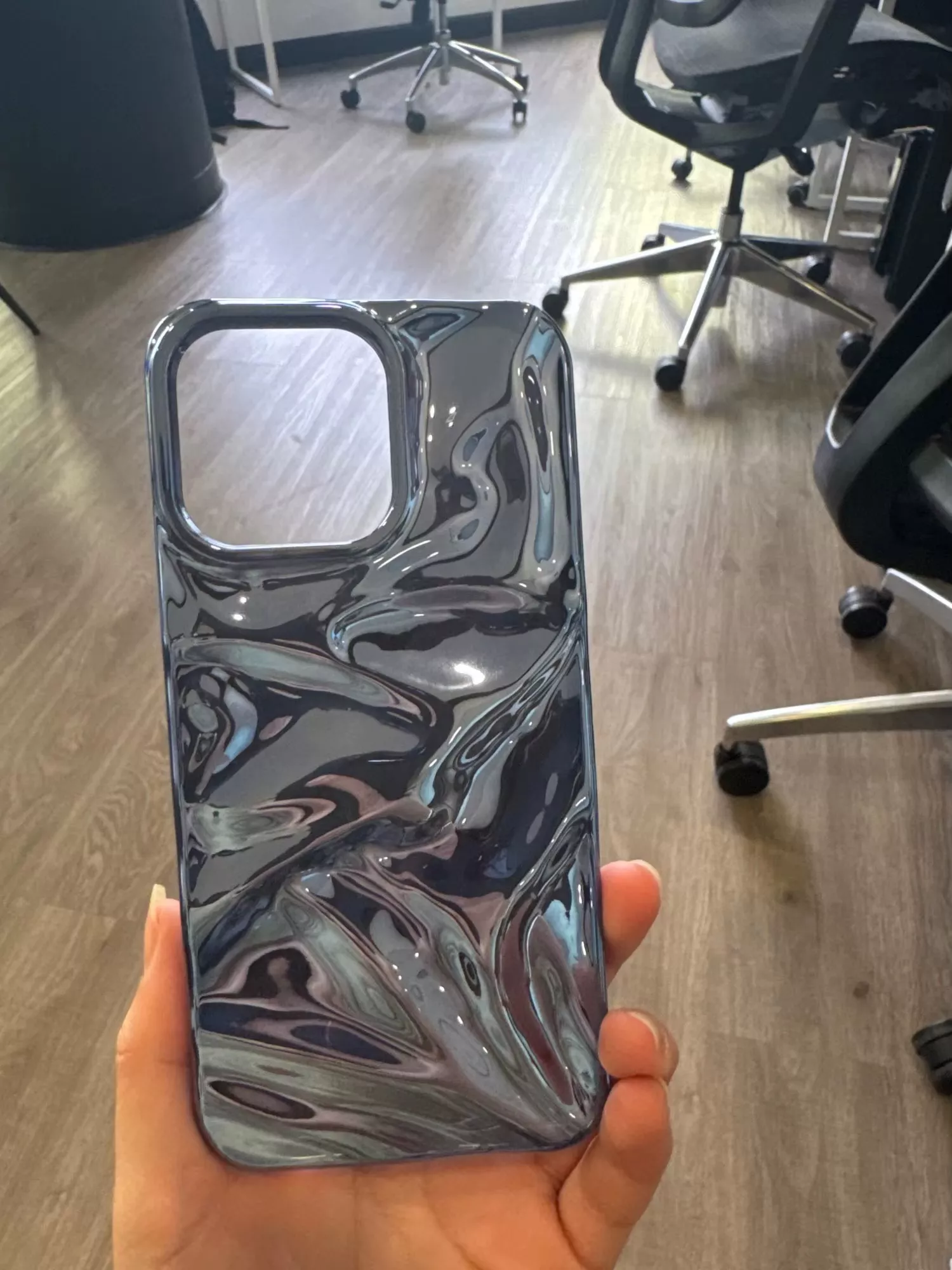 i’ve been using this case for a few weeks now and i really appreciate how it combines style and function. the shiny surface catches the light beautifully and the ripple design adds a unique look. it feels soft but sturdy in hand and protects my phone against everyday bumps and accidental drops without adding bulk.