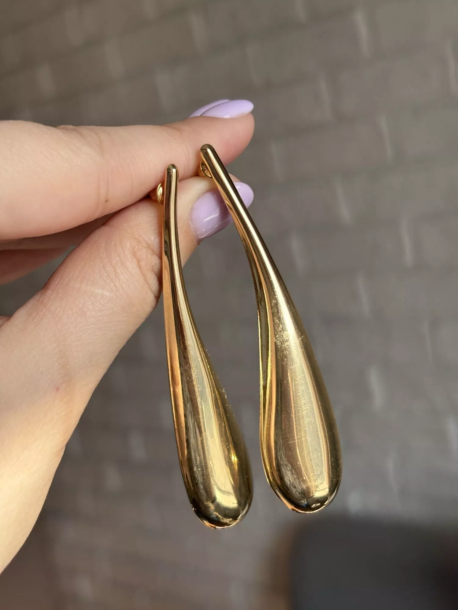 It’s all in the details. These aren’t your average dangle earrings — their exaggerated length and smooth dome design offer a runway-inspired look that feels fresh and fearless. The geometric pattern nods to modern art, while the glossy finish keeps things polished and chic. They’re not just accessories; they’re conversation starters.