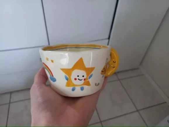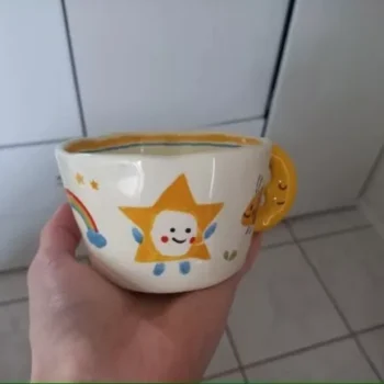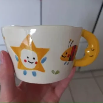 Its playful yet elegant design makes it stand out from ordinary mugs. The hand-painted ceramic exterior adds a natural, artistic texture that feels both cozy and refined. The moon-shaped handle isn’t just eye-catching—it’s a sweet reminder to slow down and enjoy the little things in life.