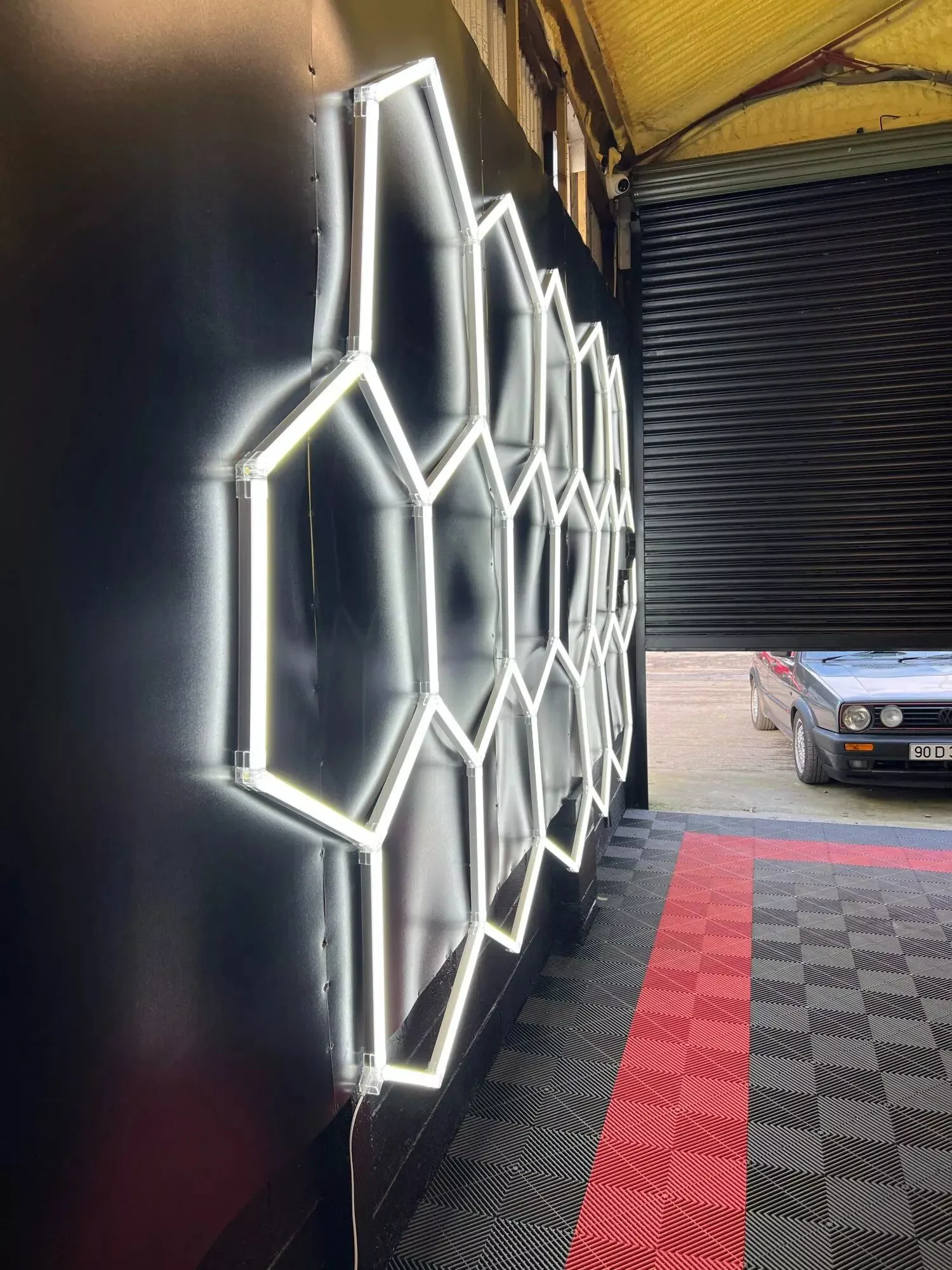 Transform your workspace into a beacon of clarity and style with our Hexagon LED Ceiling Light Tubes. Designed with meticulous attention to detail, this lighting solution offers both function and form to cater to the discerning tastes of car detailing aficionados, workshop professionals, and garage organizers. The sleek aluminum construction not only adds a touch of modern sophistication but also promises enduring performance. Perfect for a variety of professional settings, these lights bring out the true colors and details of your work, thanks to their high CRI and customizable color temperature.