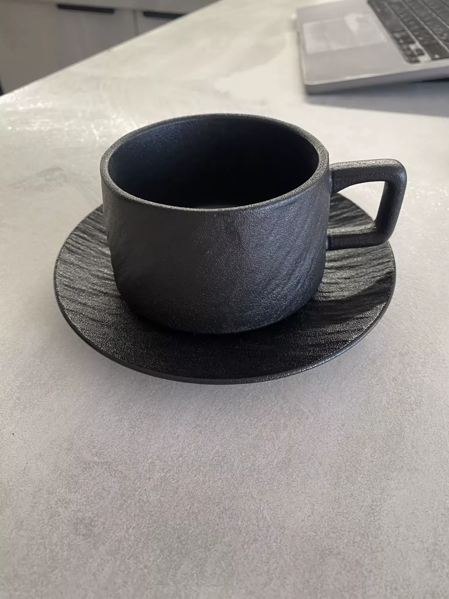 finally found a mug that matches my aesthetic perfectly! the rock sand finish feels so good to hold and look at while sipping on my daily brew ☕️ plus having a tray? genius!