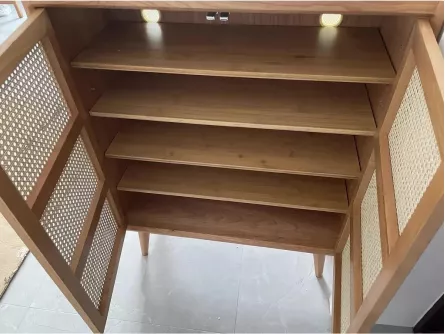 What makes this shoe cabinet special is its unique combination of traditional rattan craft with modern white oak woodwork. This blend not only ensures durability but also adds a touch of elegance to your home decor. The user-friendly design with easy access and substantial storage space makes it an essential piece for any home.