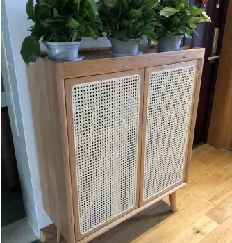 Large Capacity White Oak & Rattan Woven Shoe Cabinet