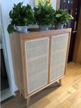Introducing our exquisite Large Capacity White Oak & Rattan Woven Shoe Cabinet, a perfect blend of style and practicality for your living room or entryway. Crafted with meticulous attention to detail, this cabinet is not just a piece of furniture, but a statement of sophistication and functionality in your home.