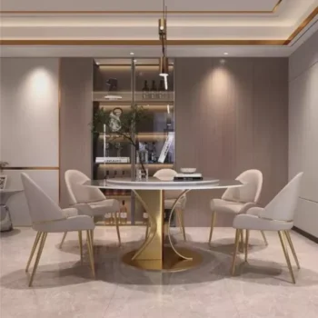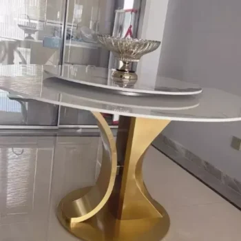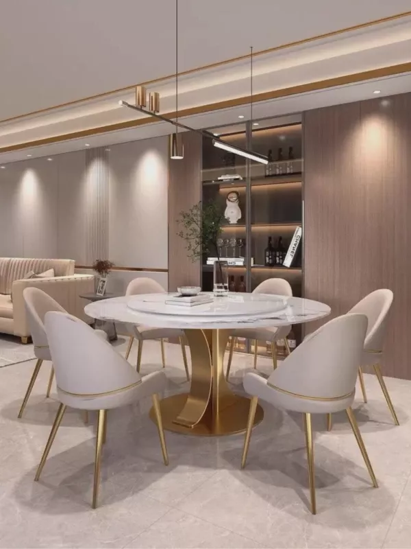 This table shines not only in its fundamental features but also in its ability to enhance the moments that matter. Best used for both daily meals and festive occasions, it turns every gathering into a luxurious banquet. The combination of practicality with the turntable and the unparalleled elegance of the gold stainless steel frame and marble top makes this dining table a unique centerpiece for your home.